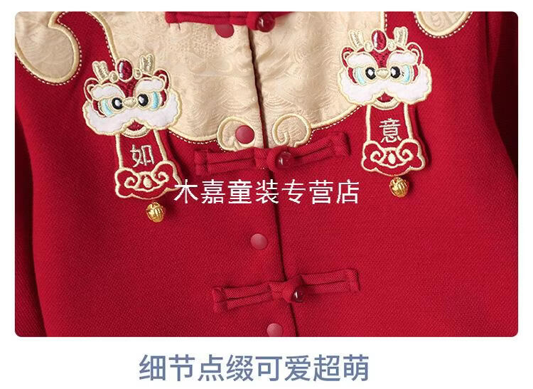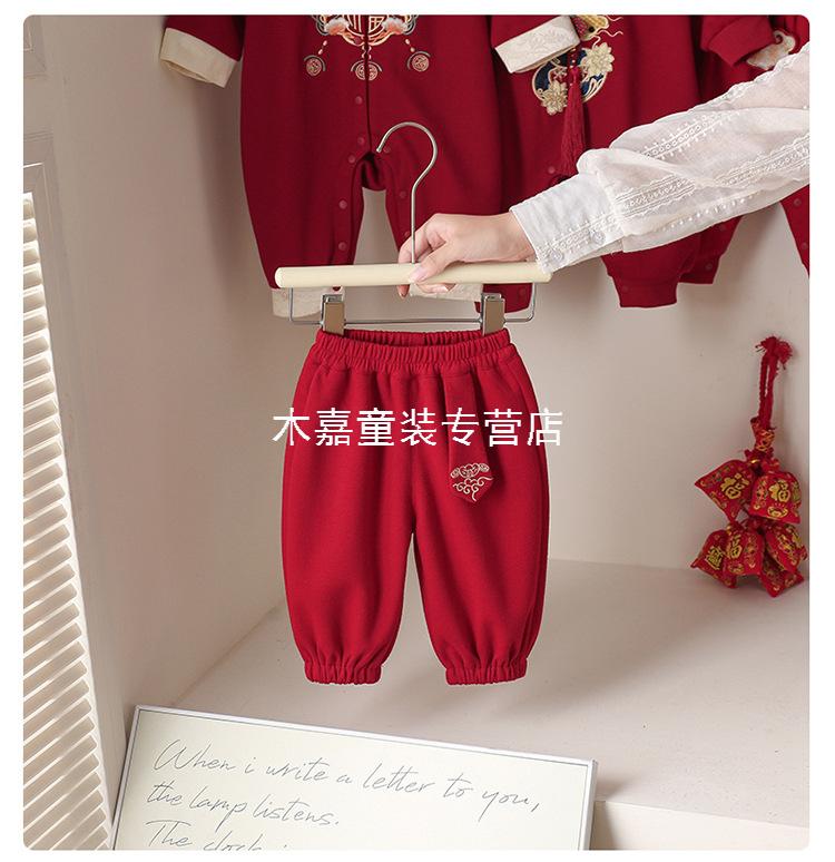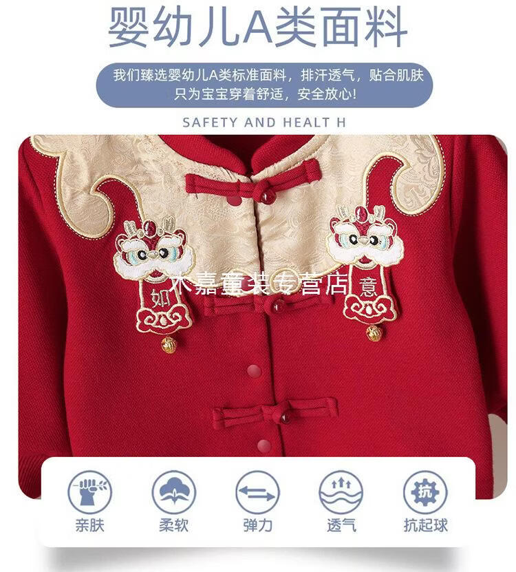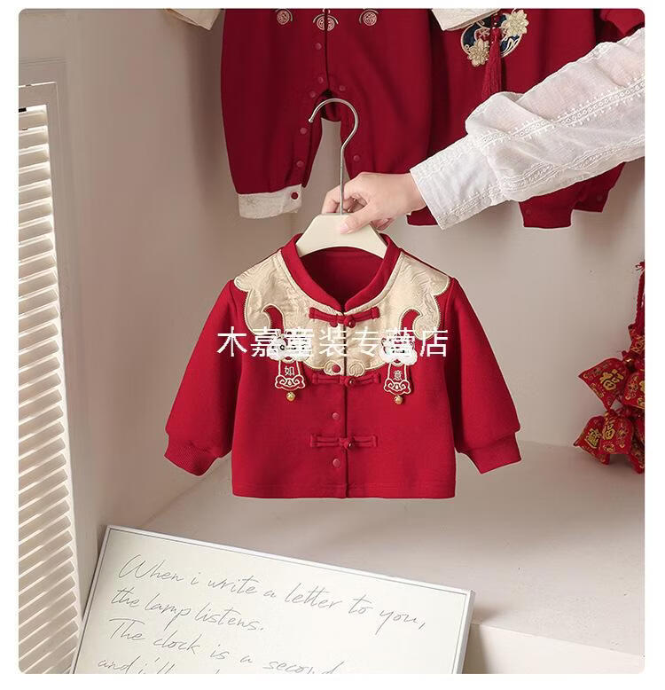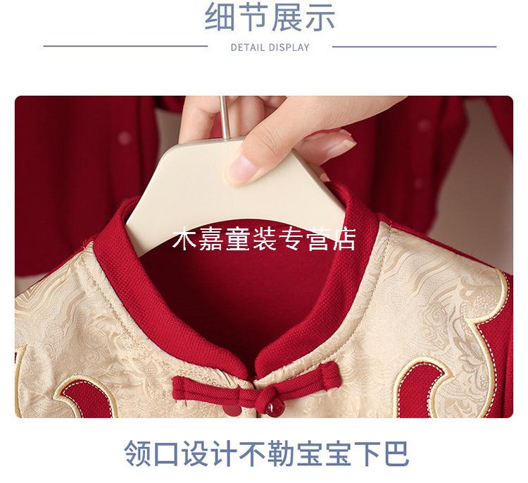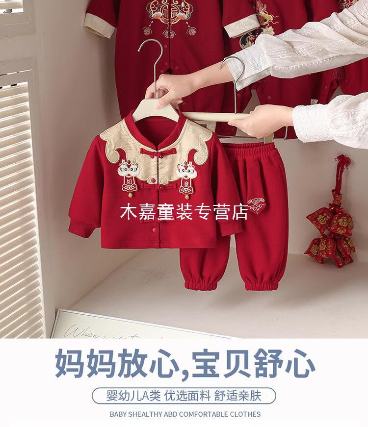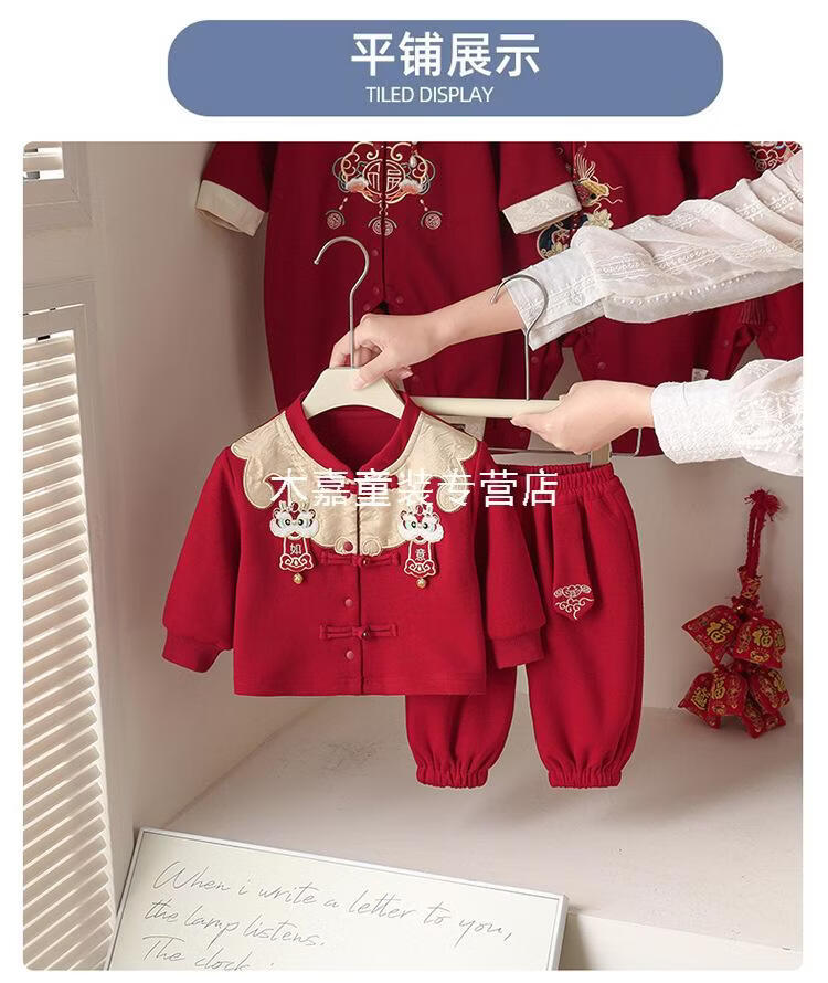 GOOFLORON一周岁礼服男宝宝儿童过年衣服春秋装红色喜庆宝宝分体两件套 红色上衣+裤子(不含帽子) 100 cm