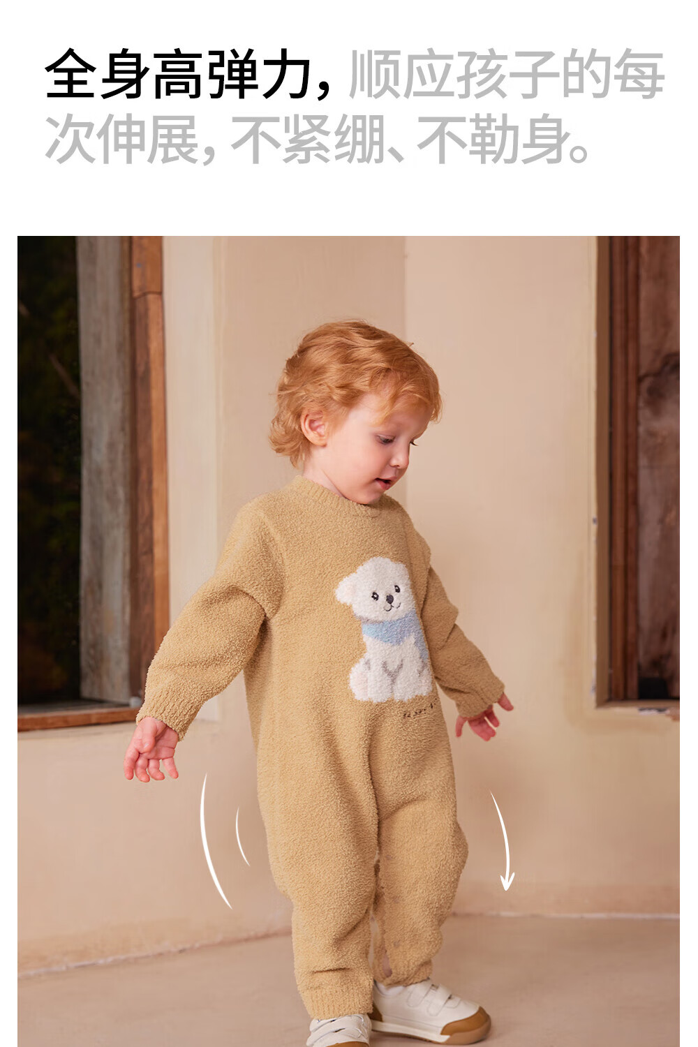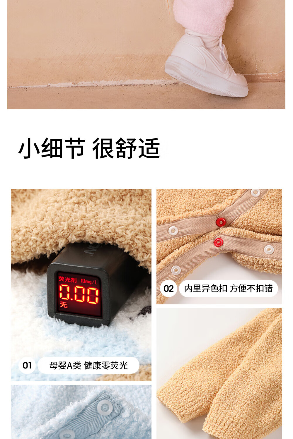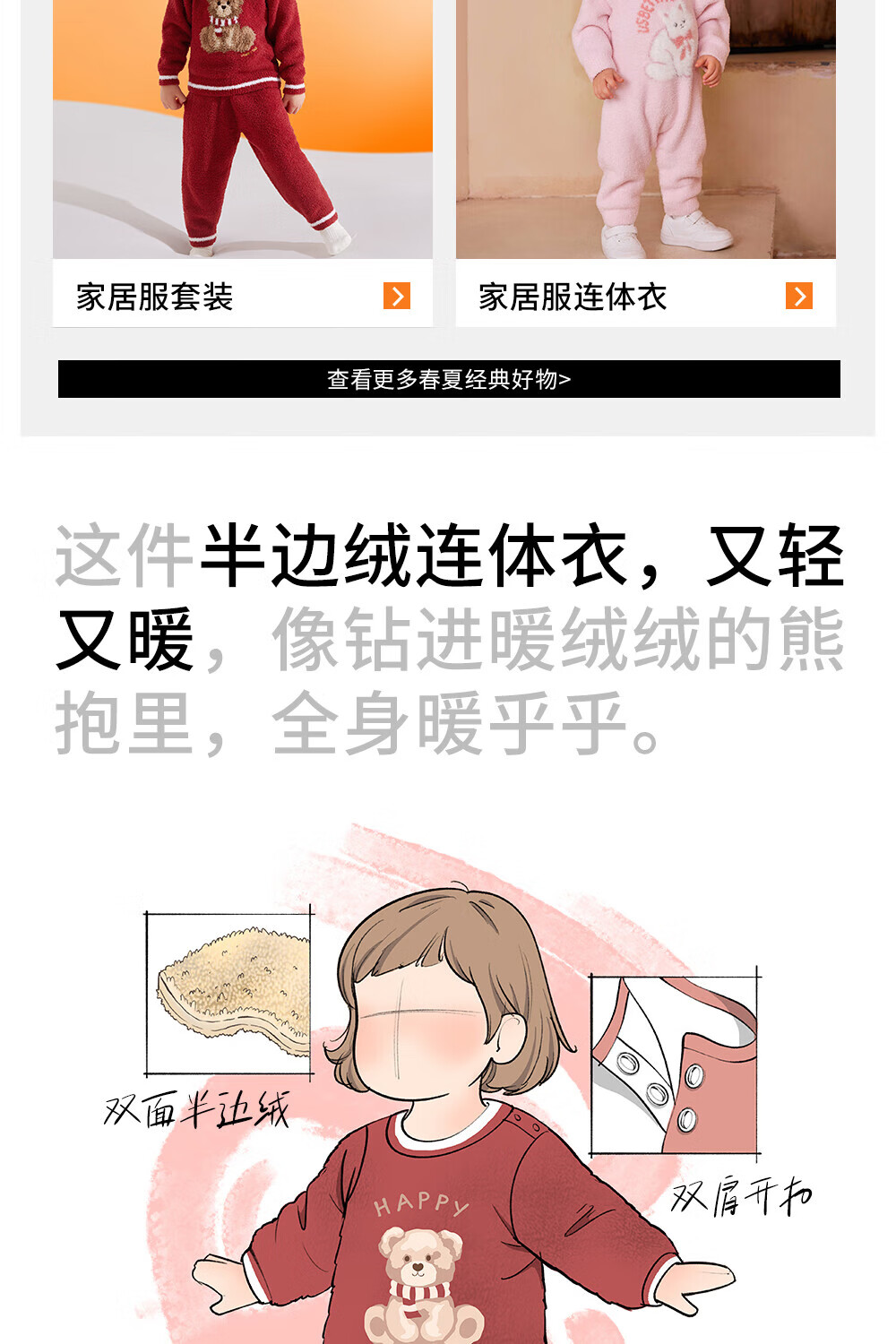 贝肽斯新生儿连体衣婴儿衣服半边绒冬季保暖加厚儿童爬服 福临小熊 80cm
