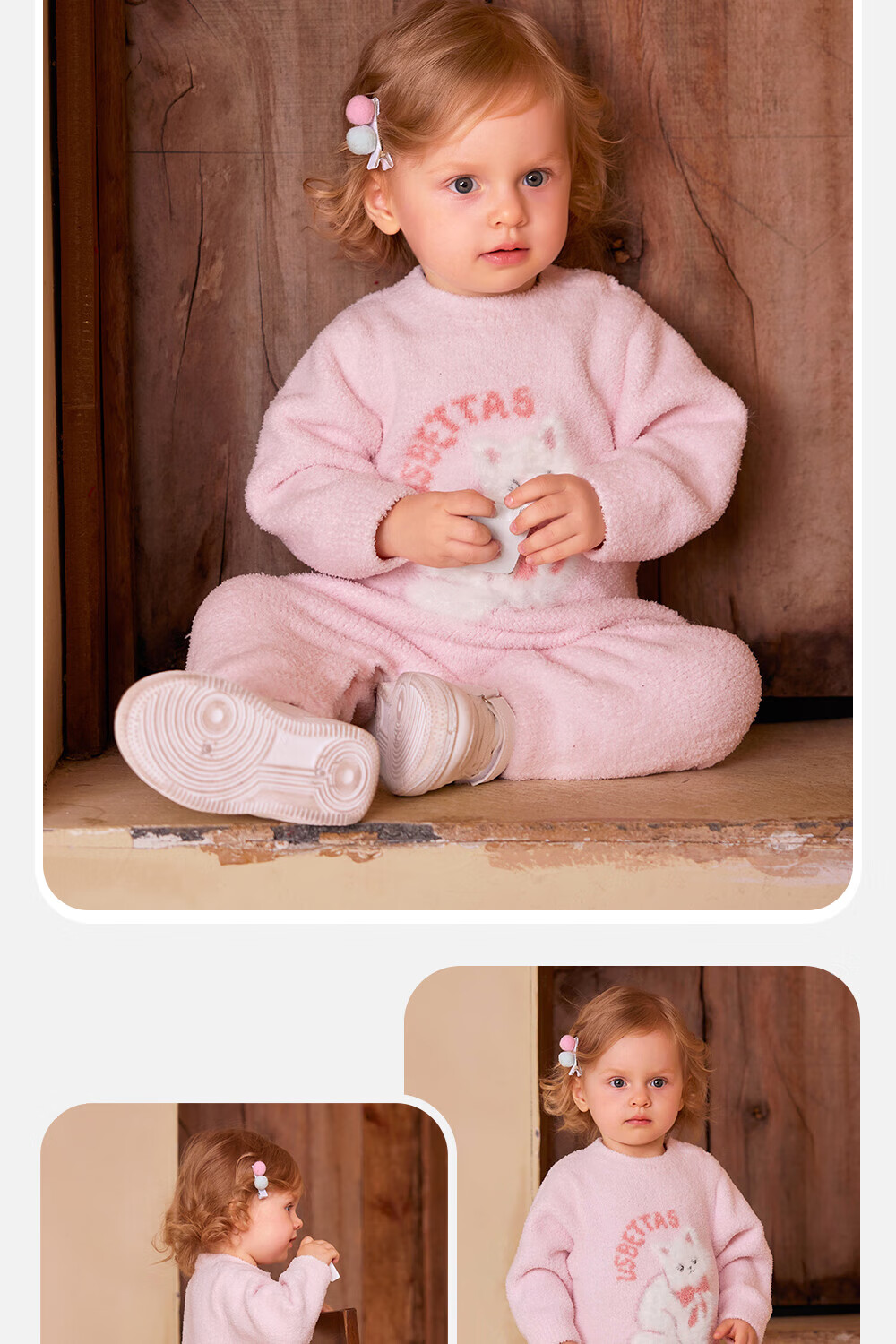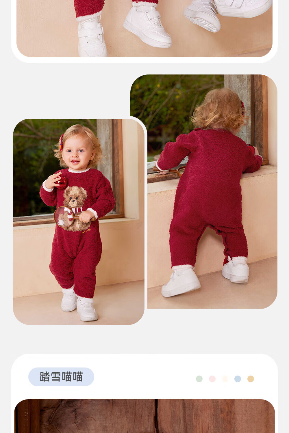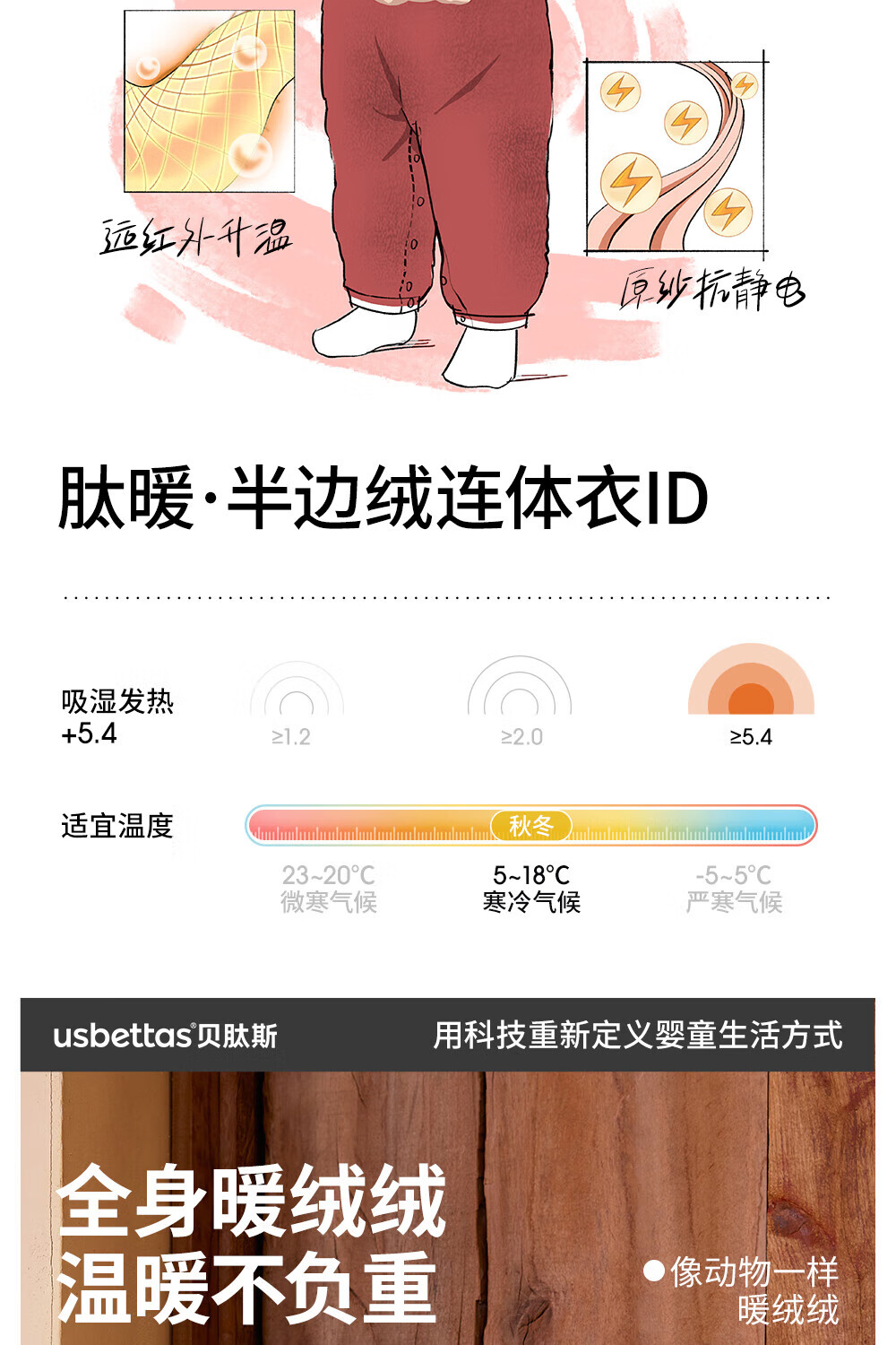 贝肽斯新生儿连体衣婴儿衣服半边绒冬季保暖加厚儿童爬服 福临小熊 80cm