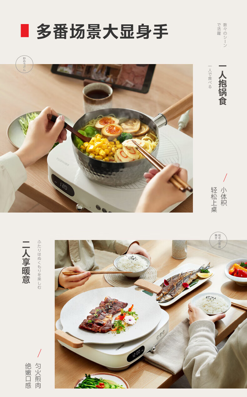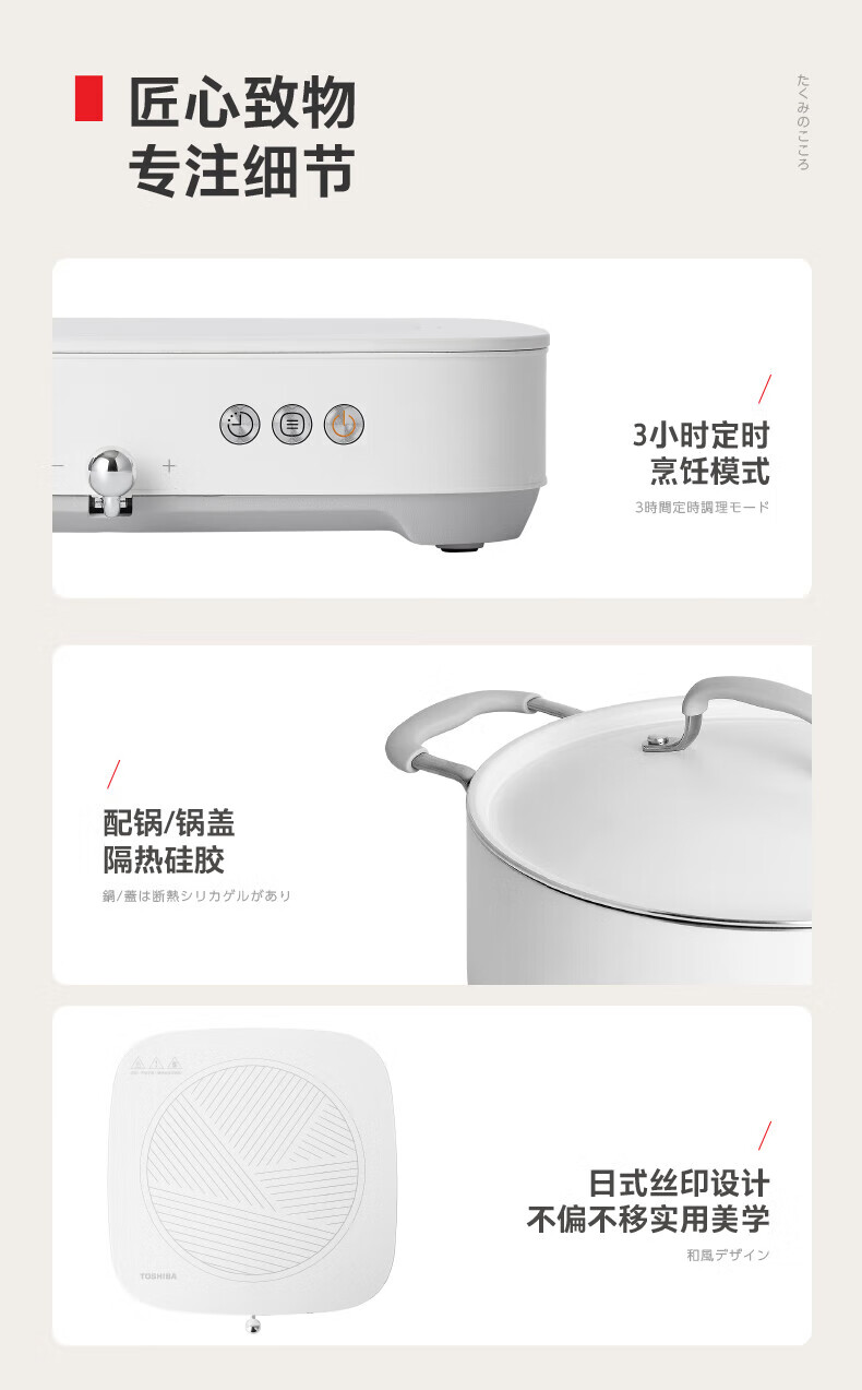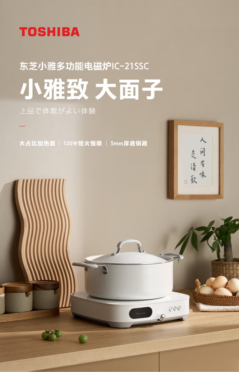 东芝(TOSHIBA)小雅家用大功率电磁炉恒火精准控制10档火力易操控智能电磁灶 IC-21SSC 标准款【白色+煮锅】