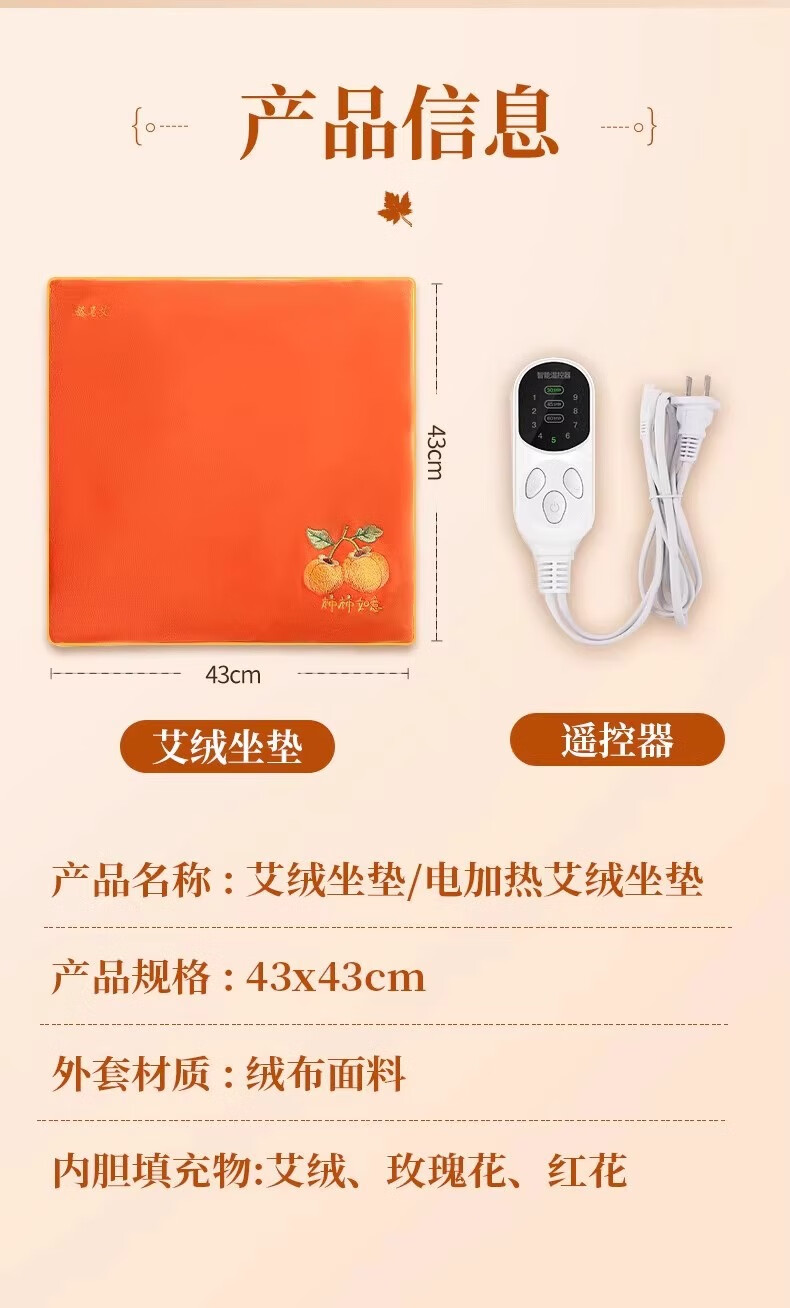 艾智元电加热艾绒坐垫家用办公室久坐臀部热敷垫艾草发热坐垫艾灸坐垫 替换内胆 加热款