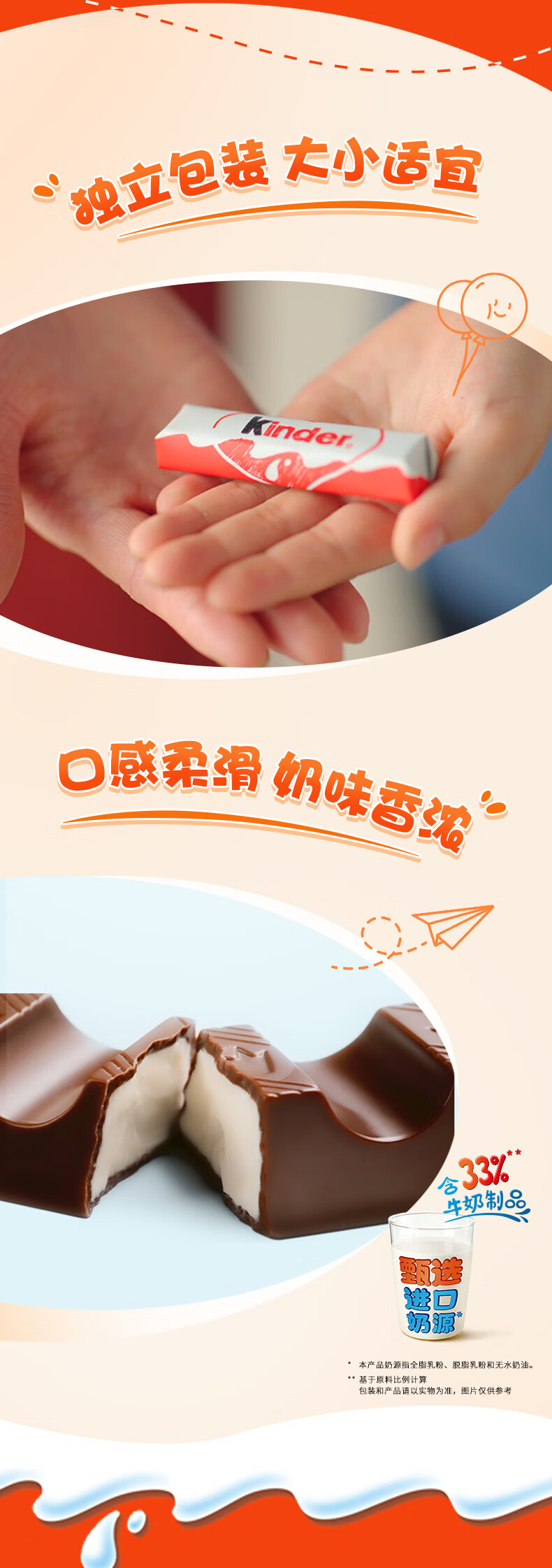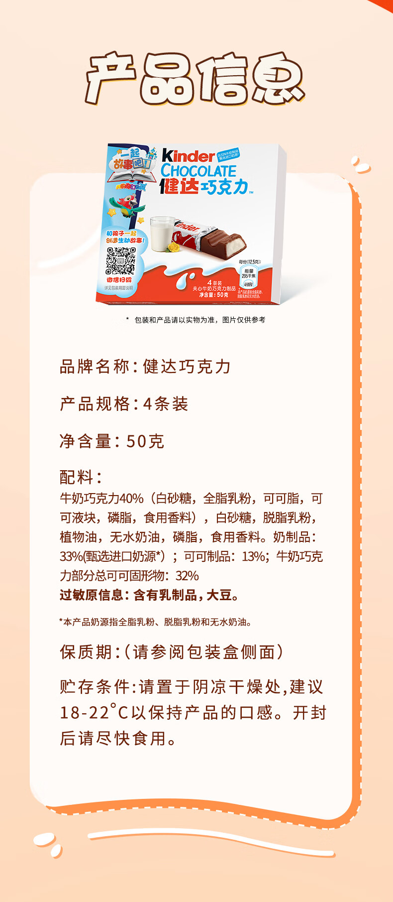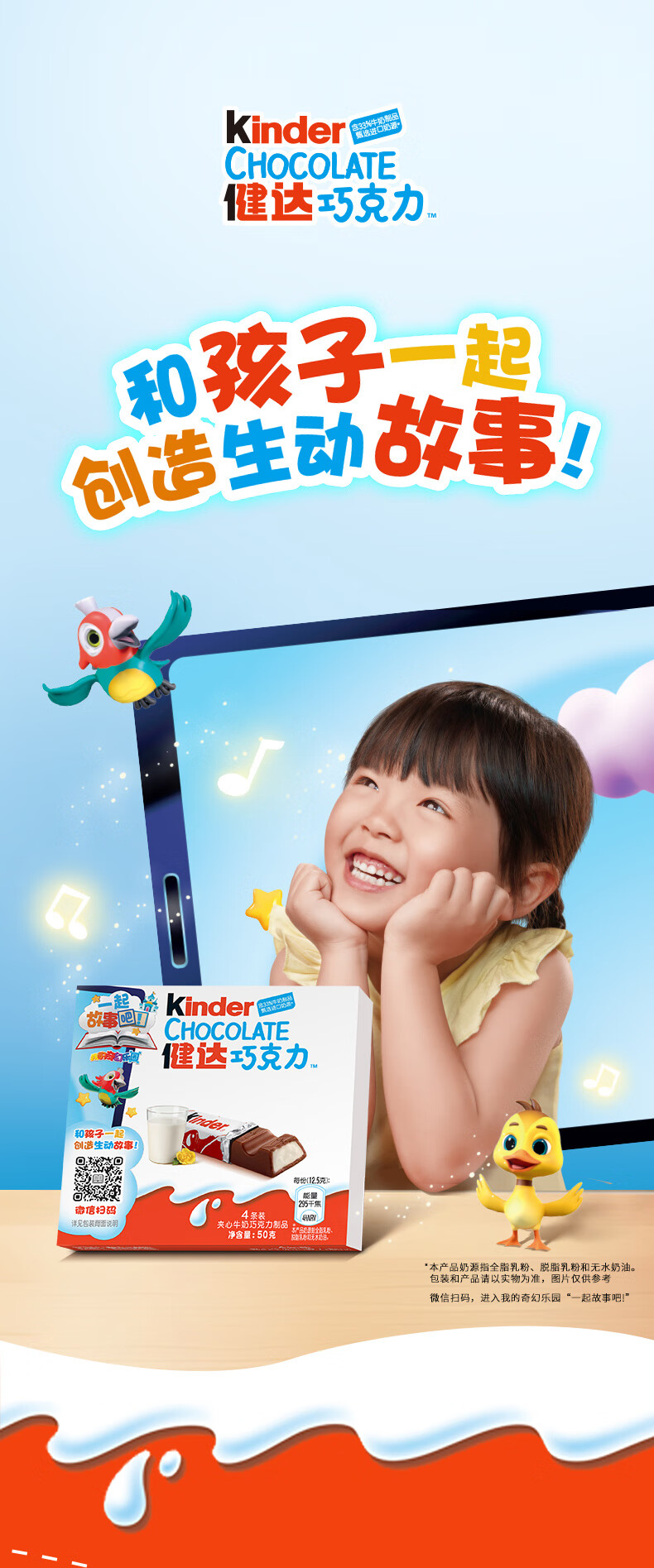 健达 牛奶夹心巧克力 4条装50g 儿童休闲零食 糖果 新年礼物