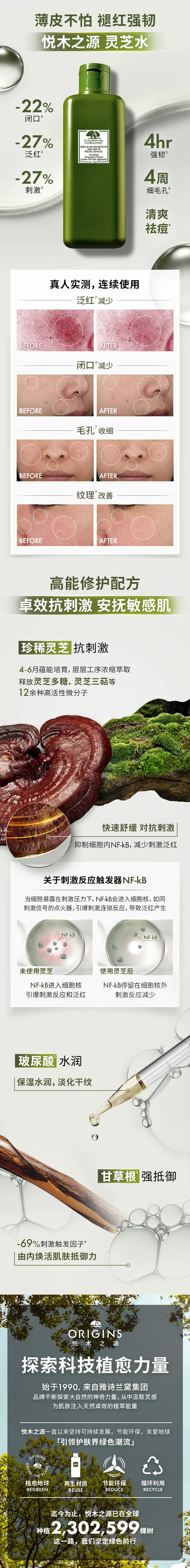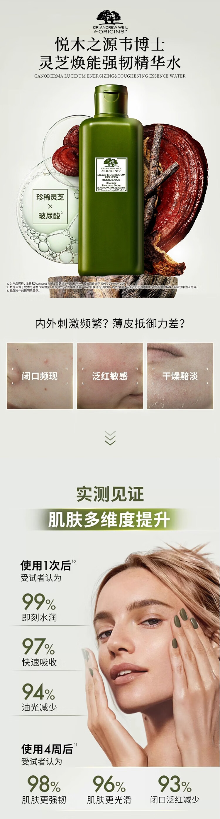 悦木之源ORIGINS韦博士灵芝焕能强韧精华水 200ml菌菇水