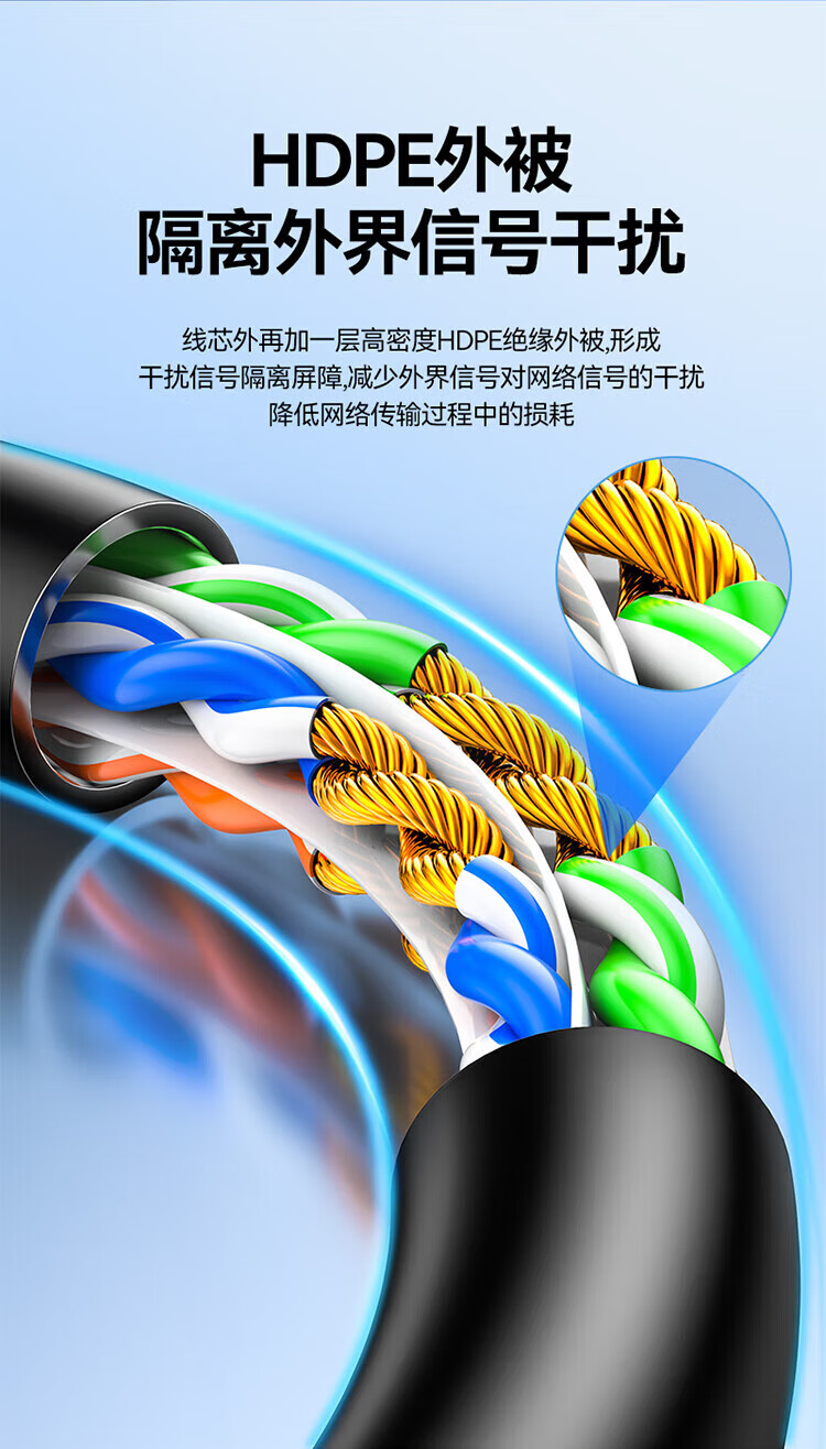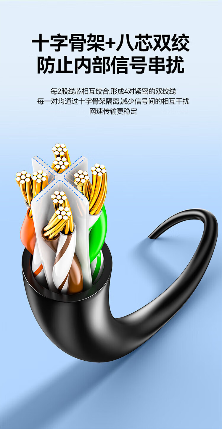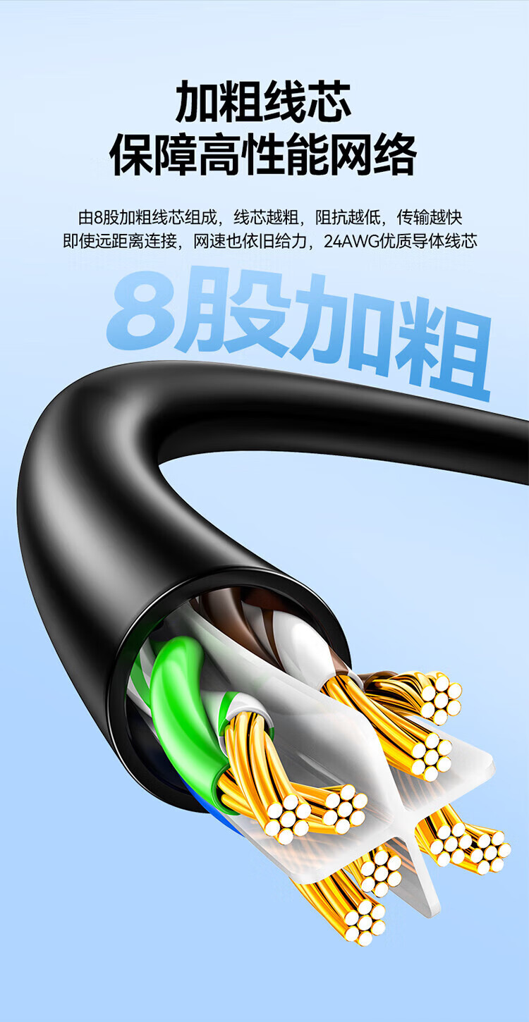 山泽六类网线 千兆八芯高速宽带线 CAT6类网络连接线家用工程装修电脑路由器5g网络监控线8芯成品跳线 七类万兆【10G四重屏蔽】工程级 CAT 2米