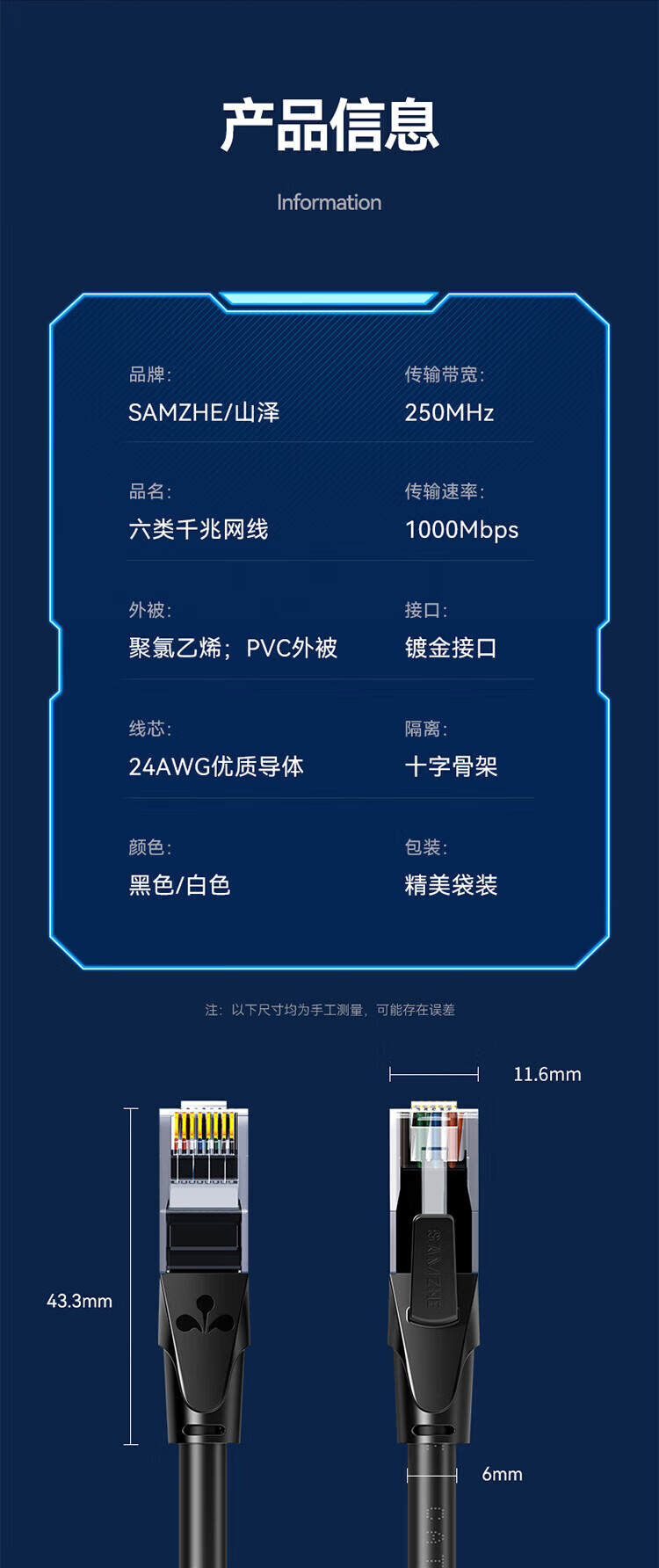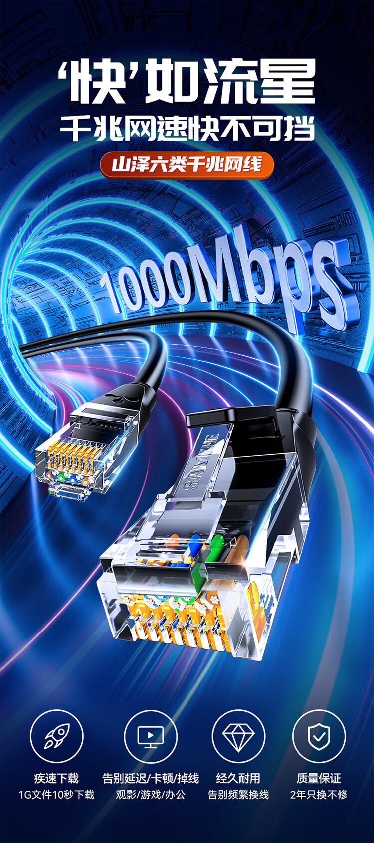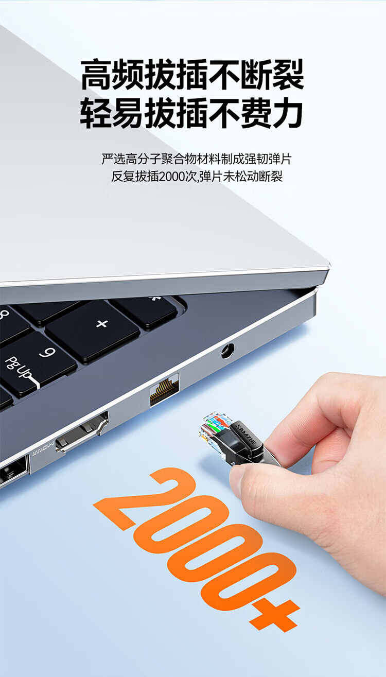 山泽六类网线 千兆八芯高速宽带线 CAT6类网络连接线家用工程装修电脑路由器5g网络监控线8芯成品跳线 七类万兆【10G四重屏蔽】工程级 CAT 2米