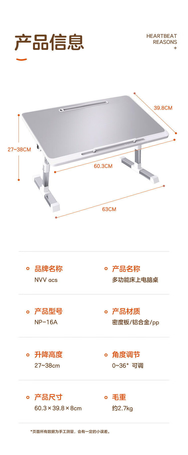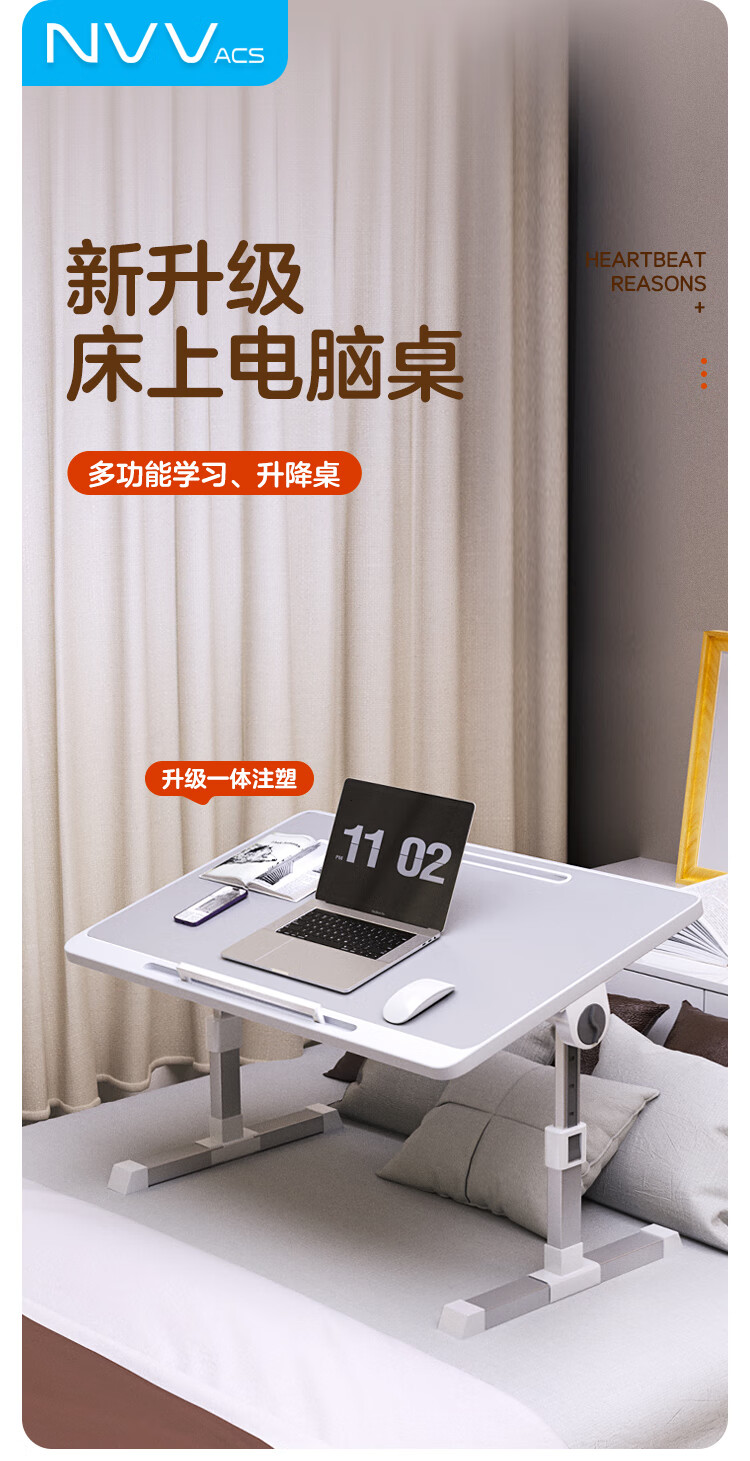 NVV床上电脑桌书桌小桌子大号笔记本电脑支架可升降加高折叠宿舍学习小桌板卧室飘窗懒人游戏桌NP-16A