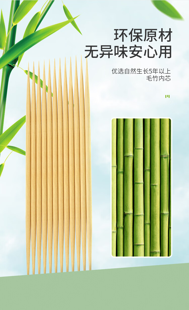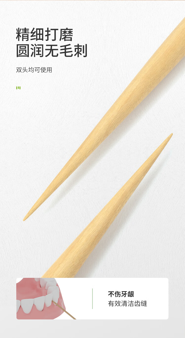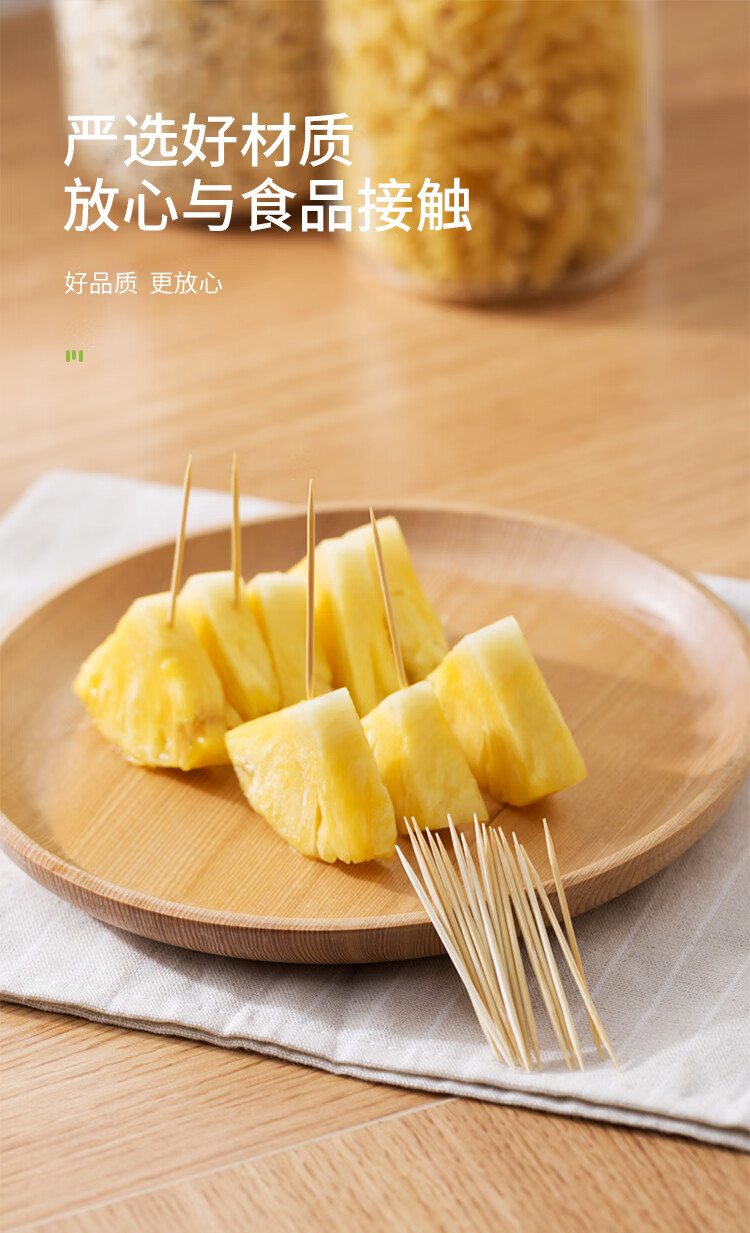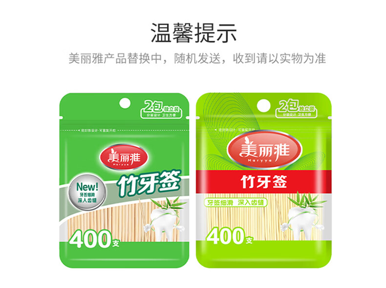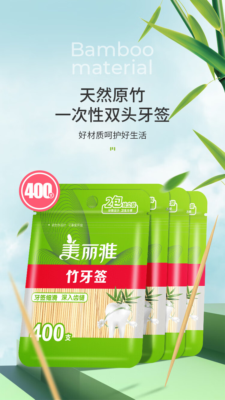 美丽雅 牙签400支袋装竹制双头使用剔牙棒便携一次性家用水果小吃签