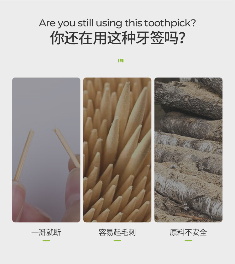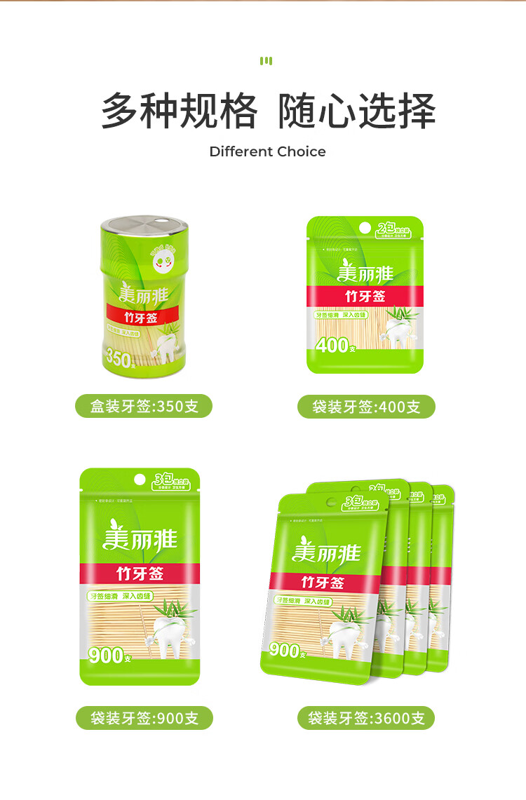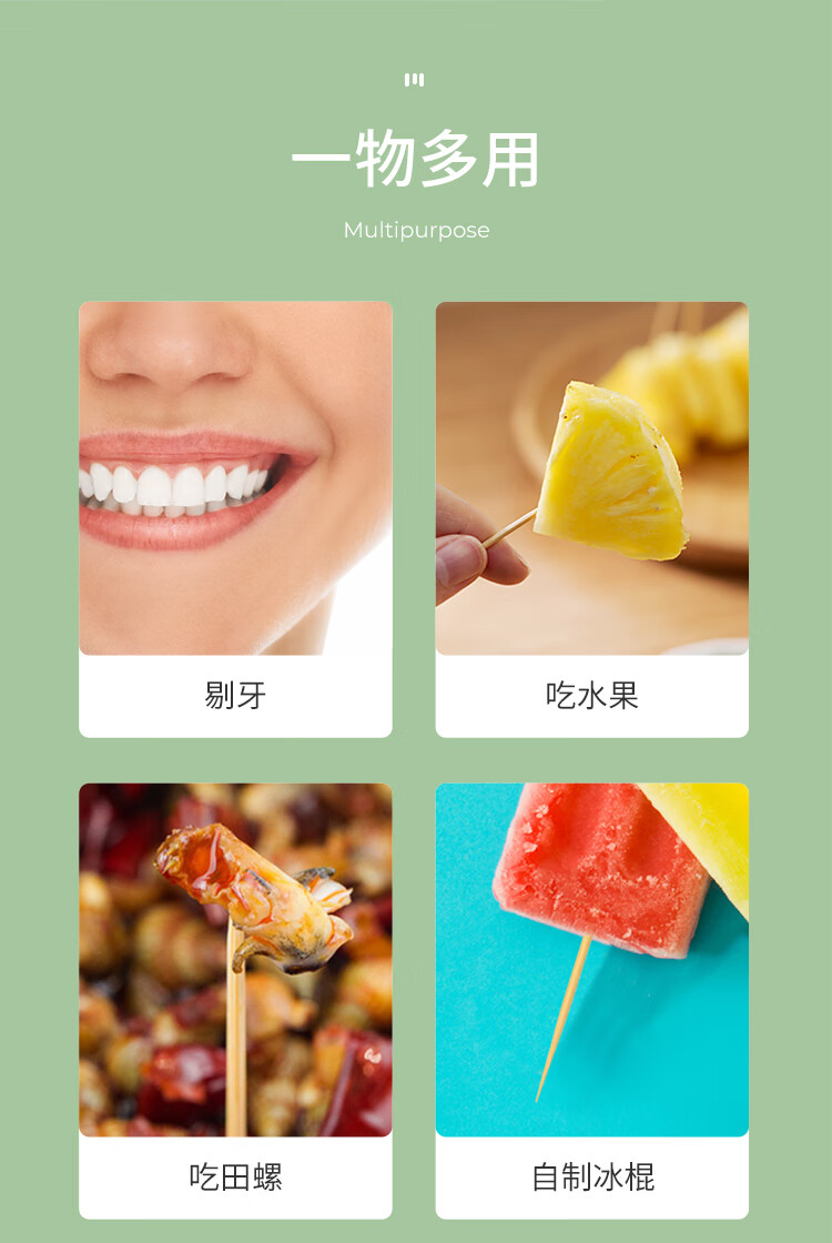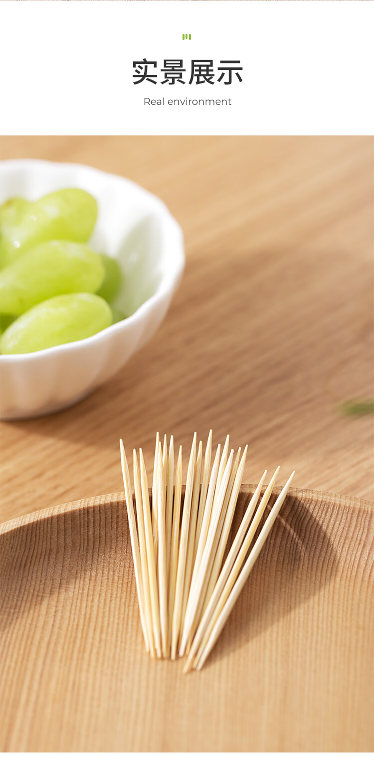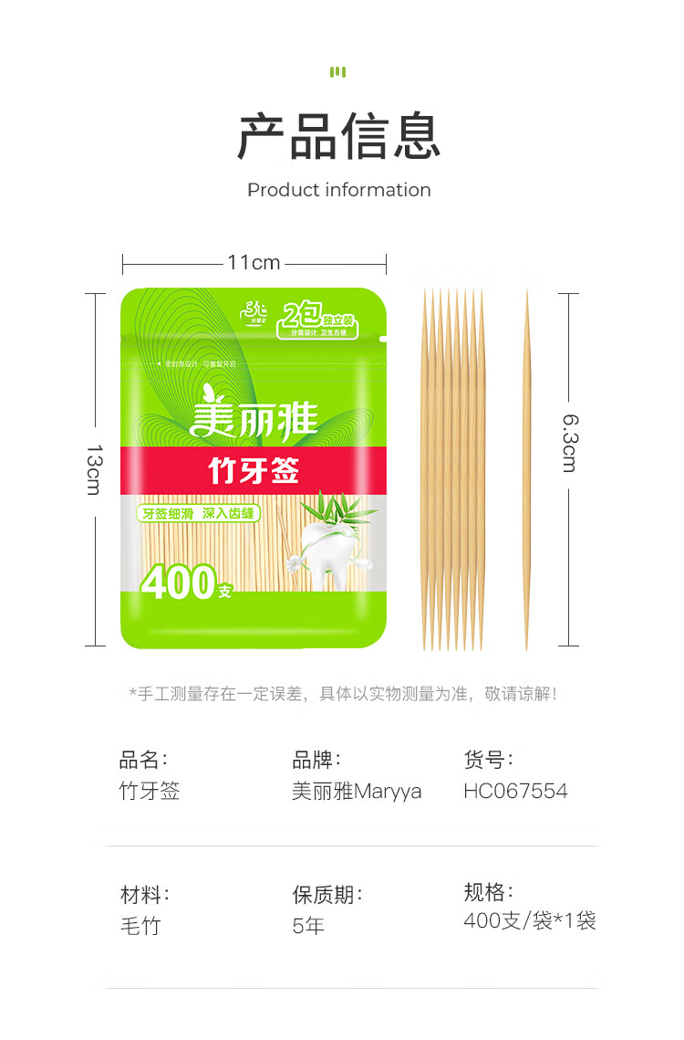美丽雅 牙签400支袋装竹制双头使用剔牙棒便携一次性家用水果小吃签