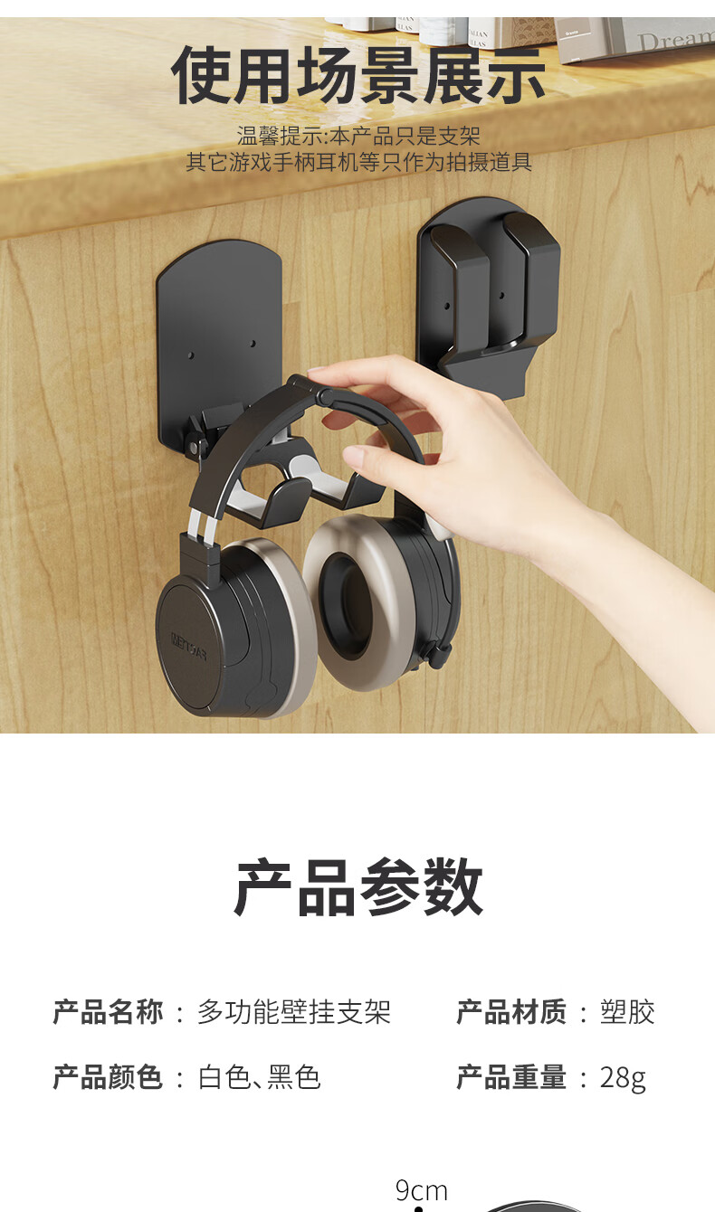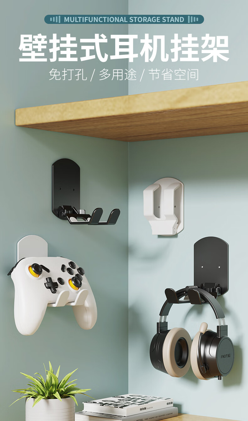 【精选直发】免打孔头戴式耳机支架壁挂悬挂架托架耳麦收纳架挂钩宿舍粘贴壁架 【白色】壁挂耳机挂架-塑胶