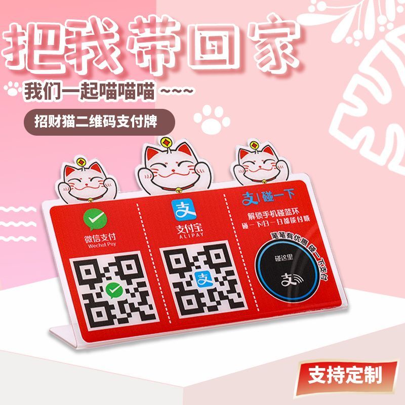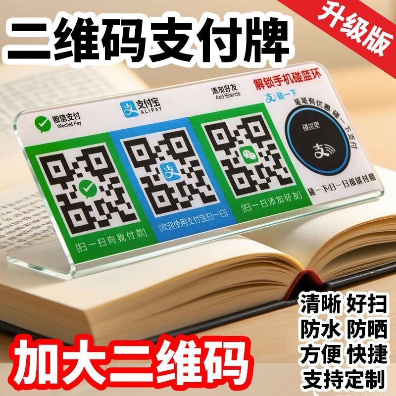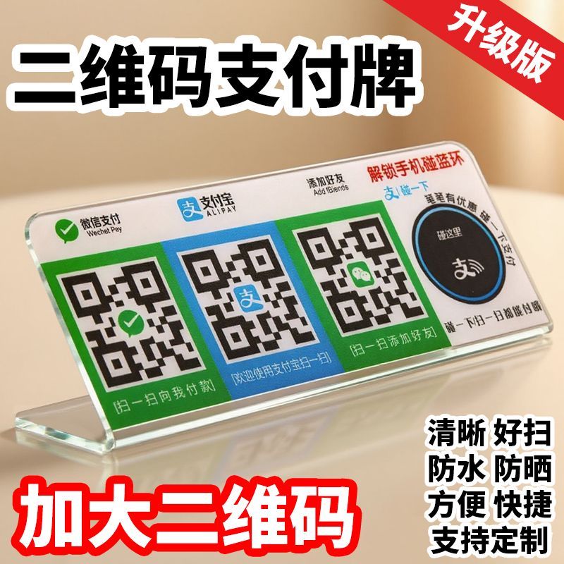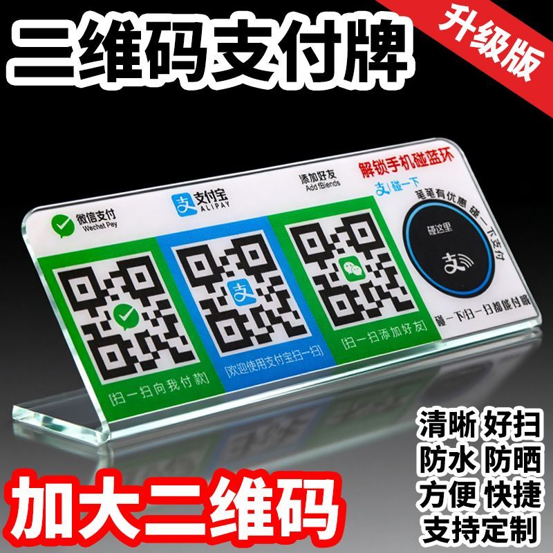 定制亚克力碰一碰支付宝微信收款二维码立牌 L型展示摆台收钱台牌