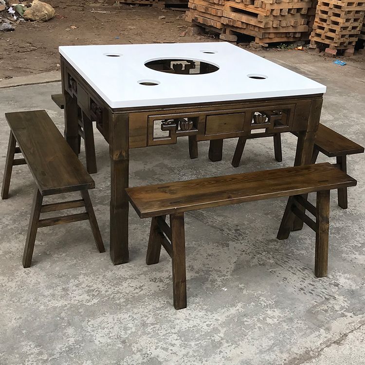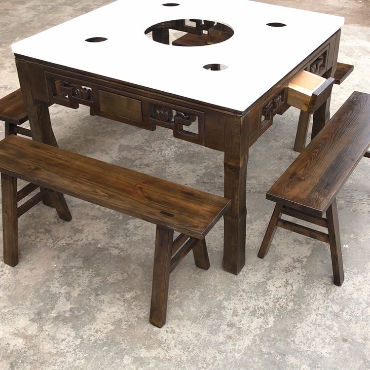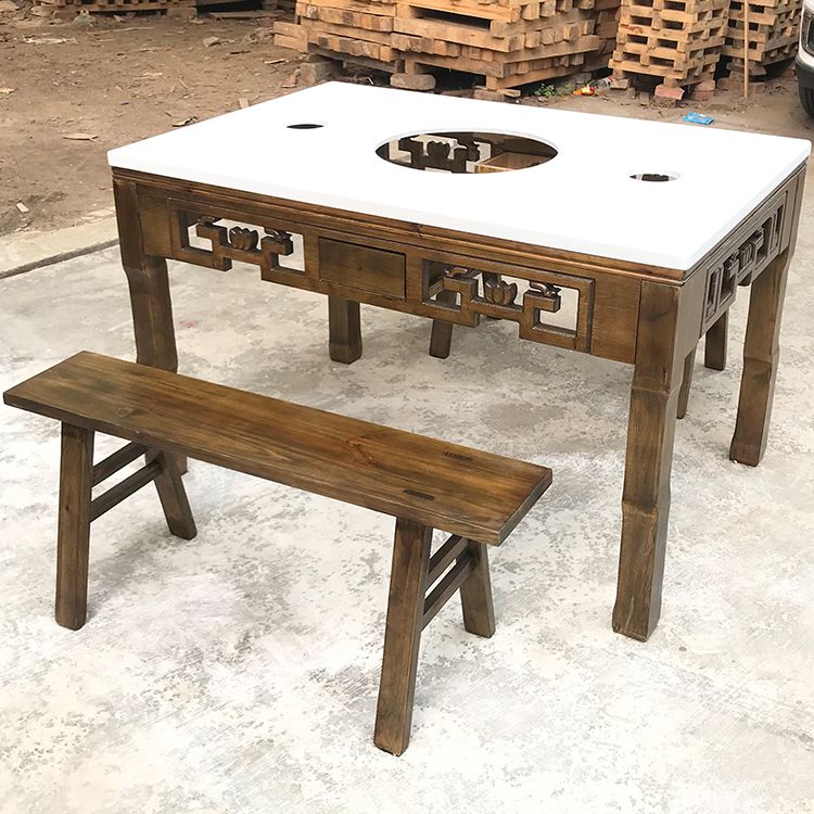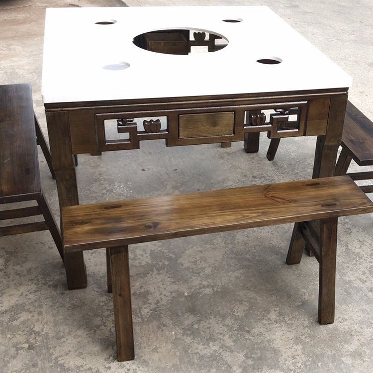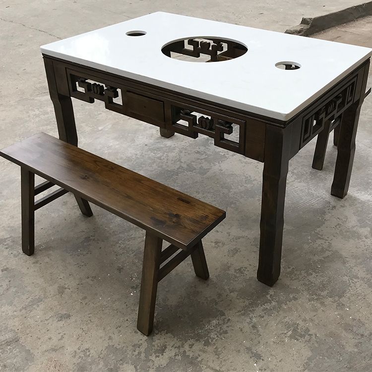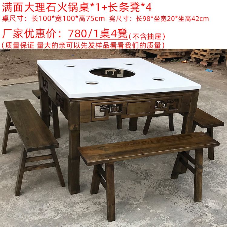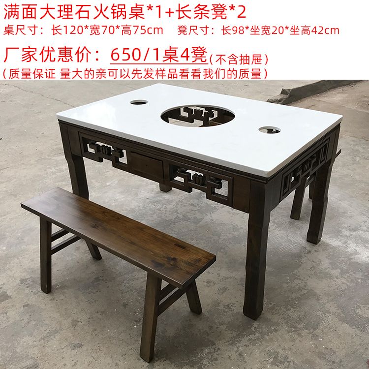 大理石火锅桌子商用两用串串电磁炉一体桌火锅店桌椅组合全套无烟