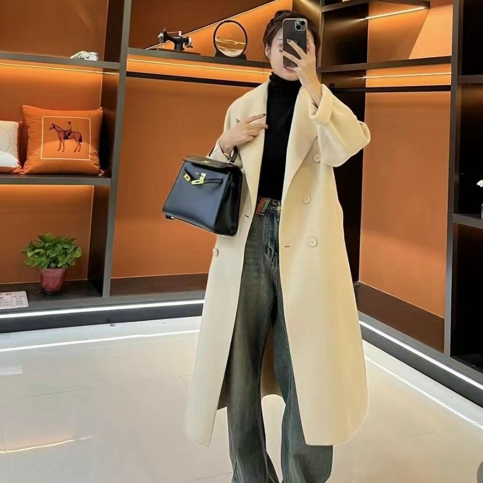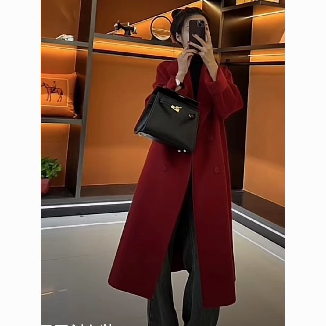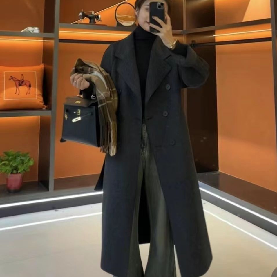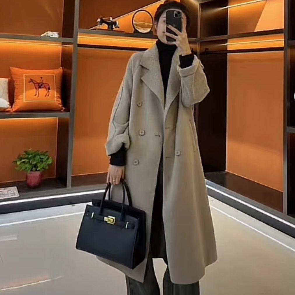 【2025新款】高端秋冬款时尚百搭气质赫本风双排扣毛呢双面绒大衣