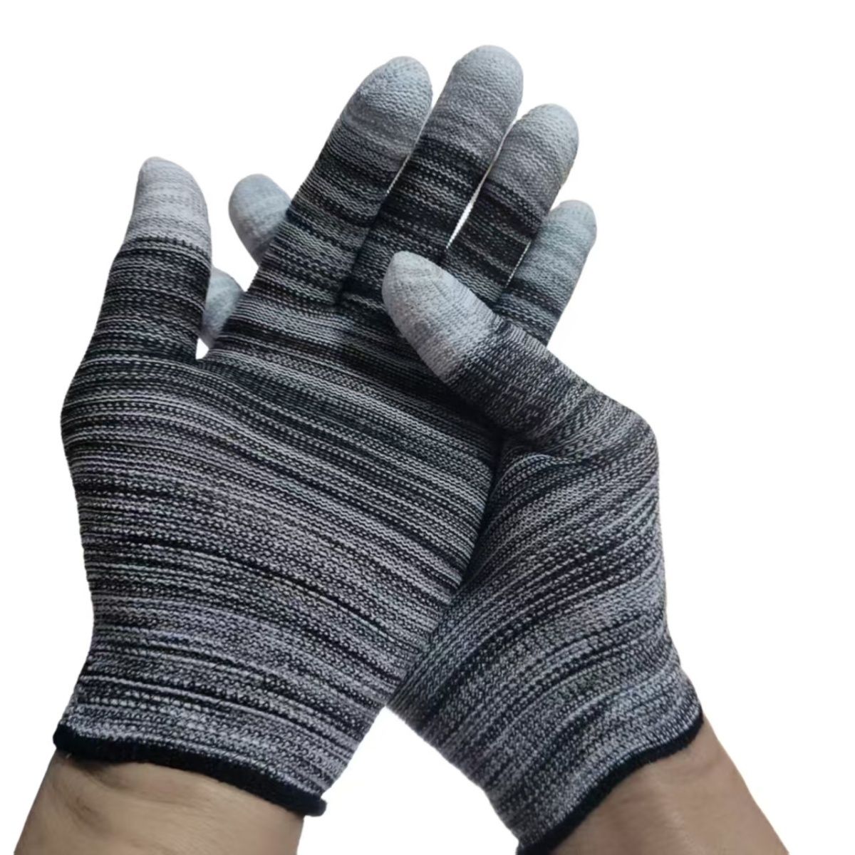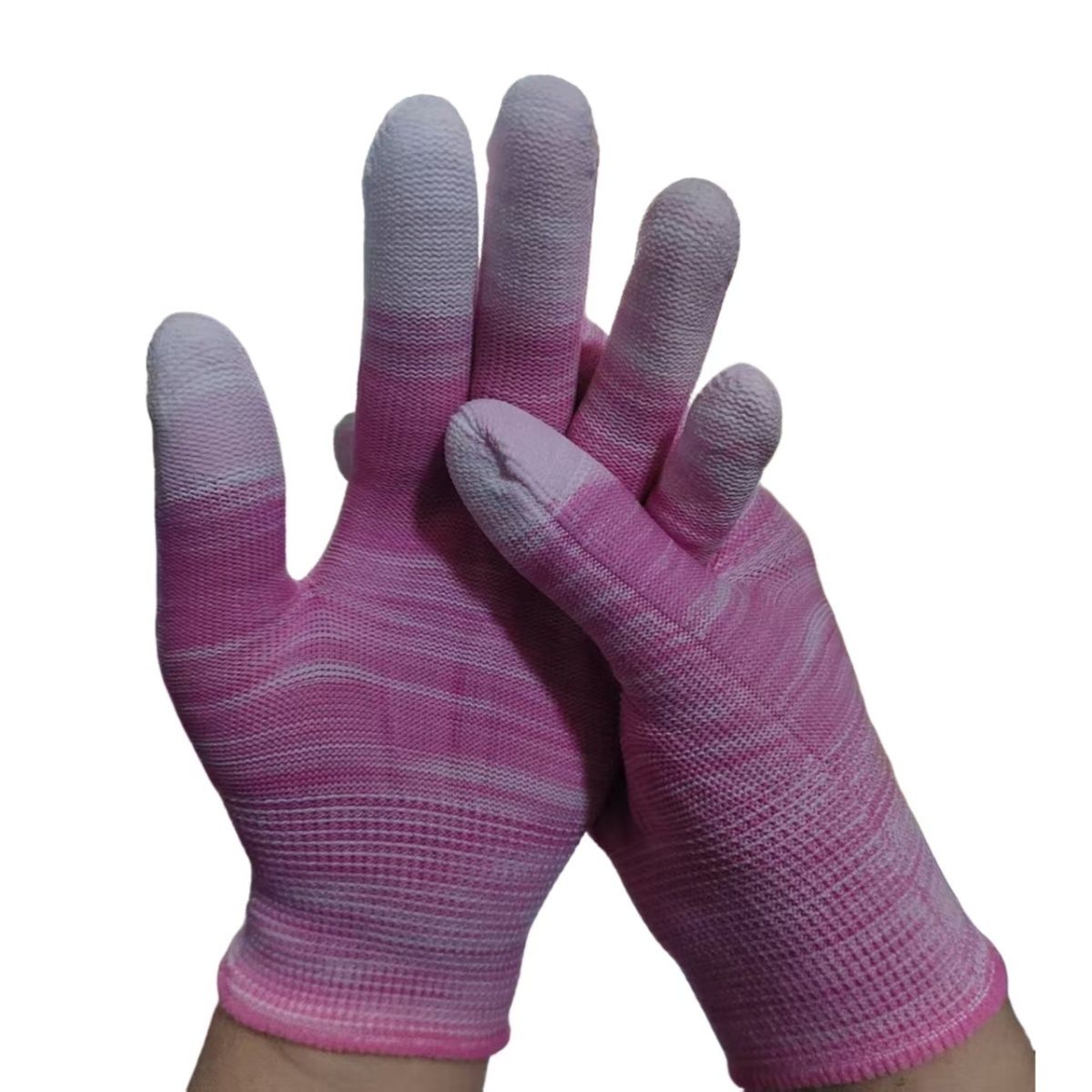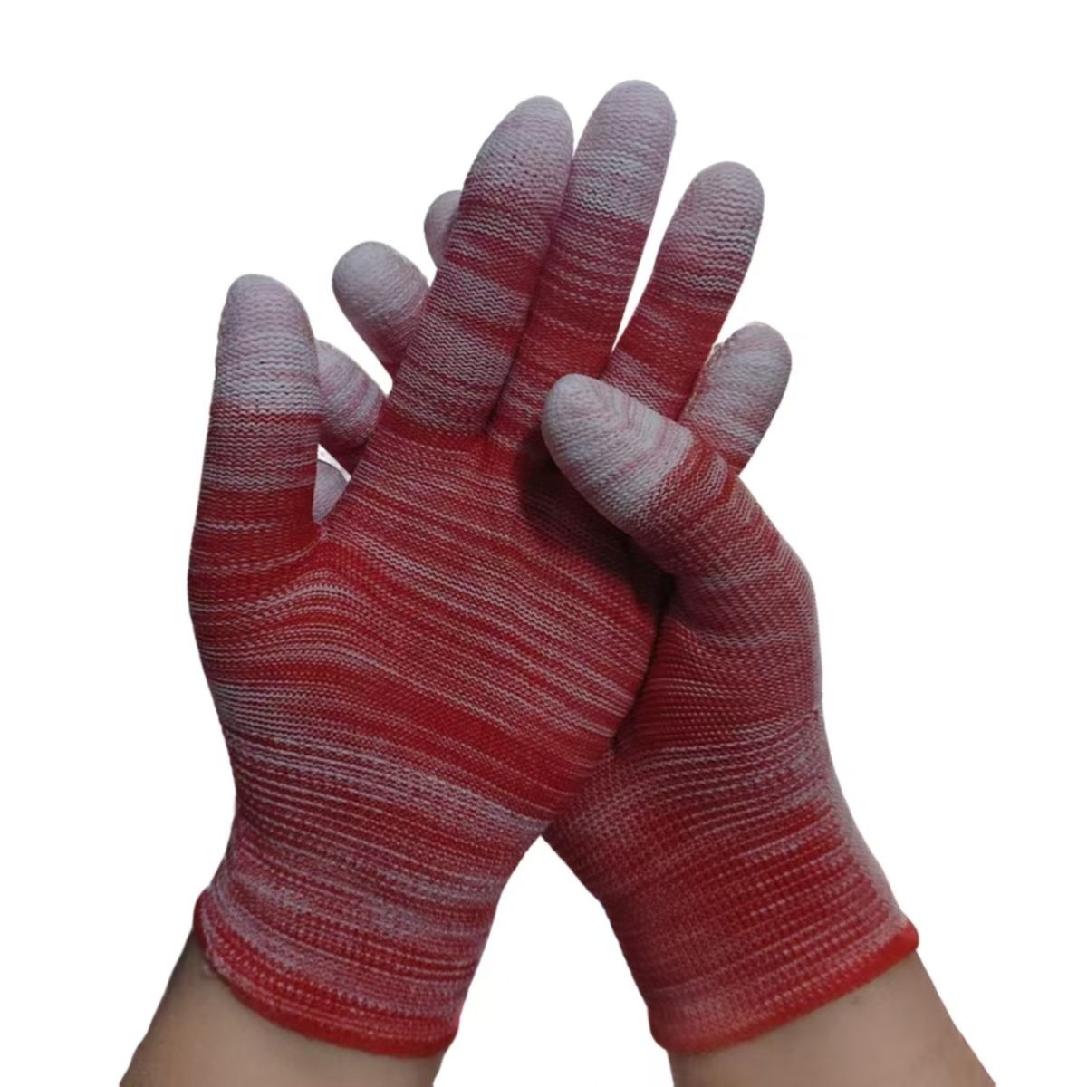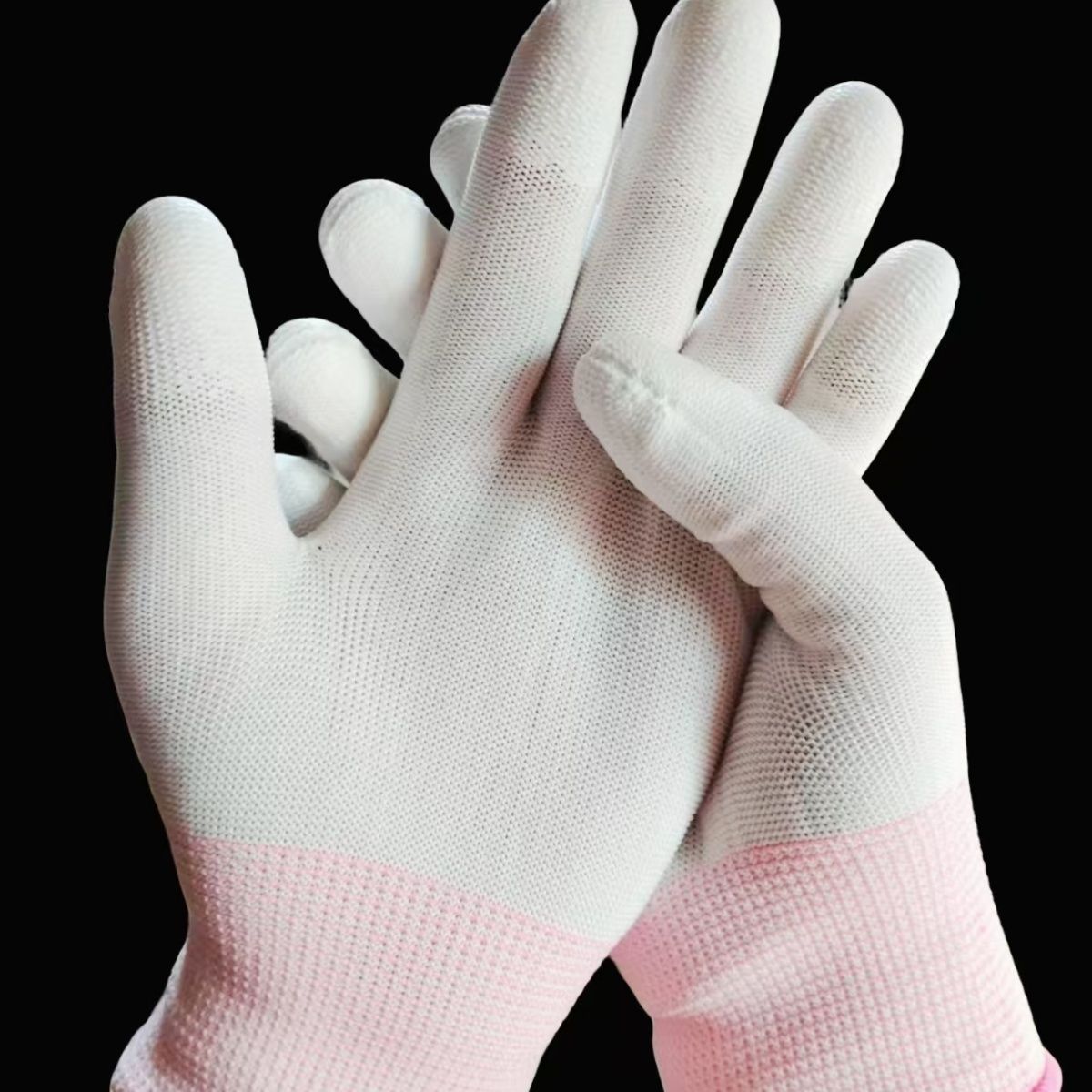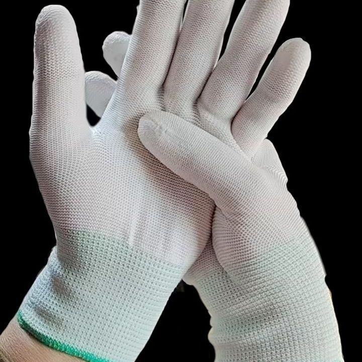 PU涂指手套尼龙压纹耐磨防滑涂胶防静电手掌手指带胶手套