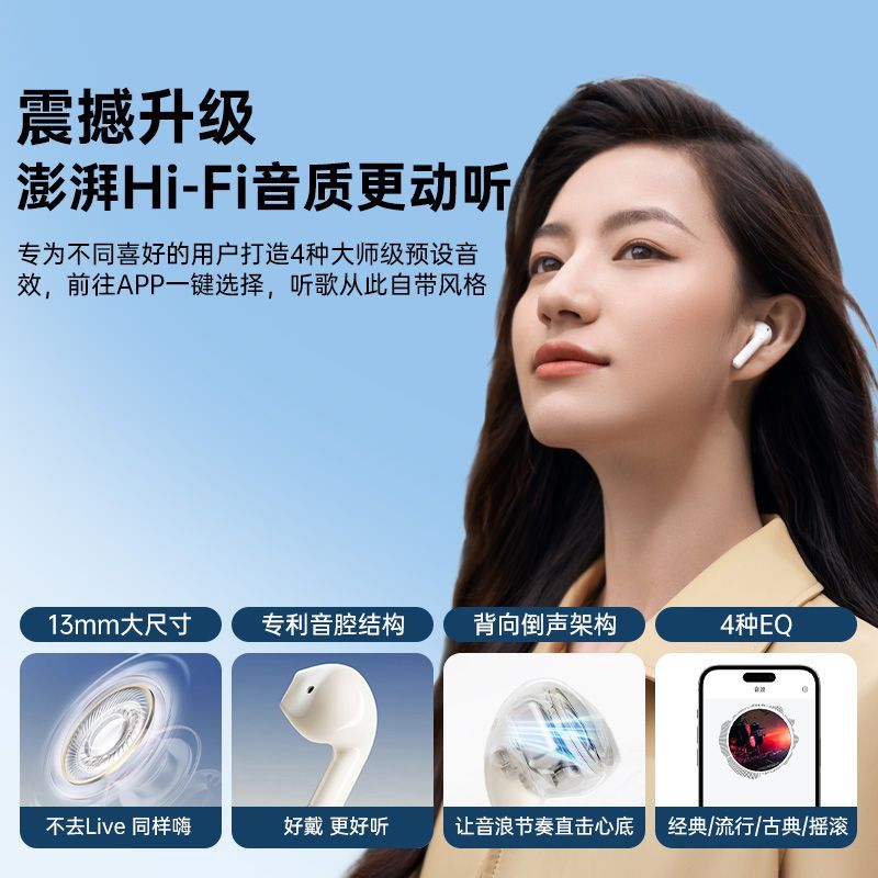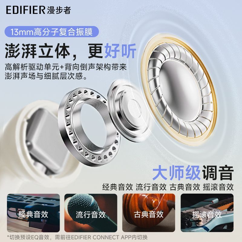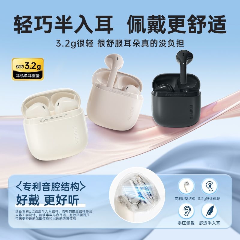 漫步者花再ZeroAir U型佩戴蓝牙耳机APP定制长续航游戏耳机