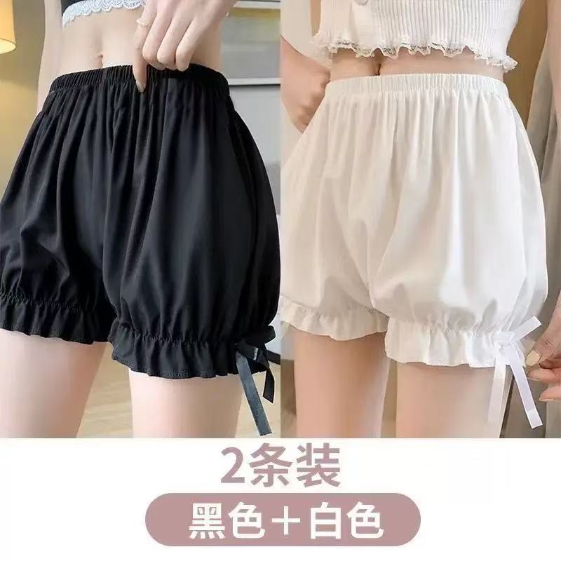 防走光洛丽塔短裤南瓜裤女冰丝夏薄款睡裤jk可外穿白色灯笼安全裤