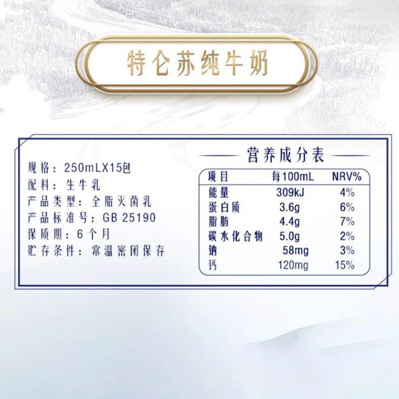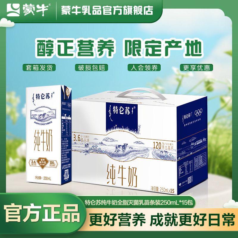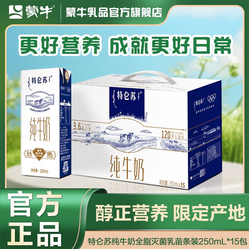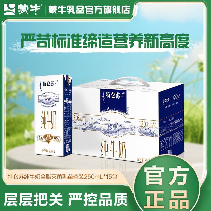 9月 特仑苏纯牛奶全脂灭菌乳苗条装250mL*15盒营养早餐囤货