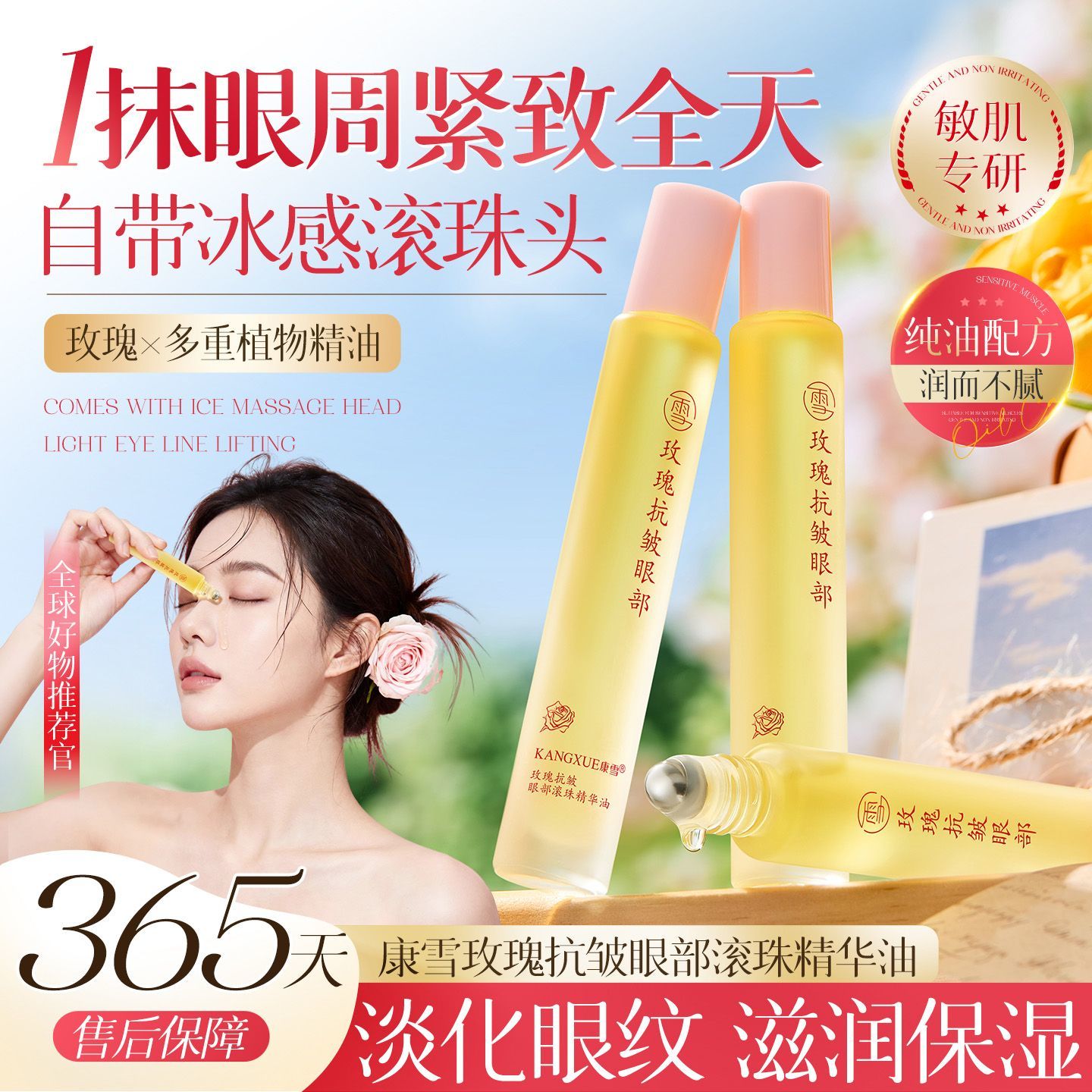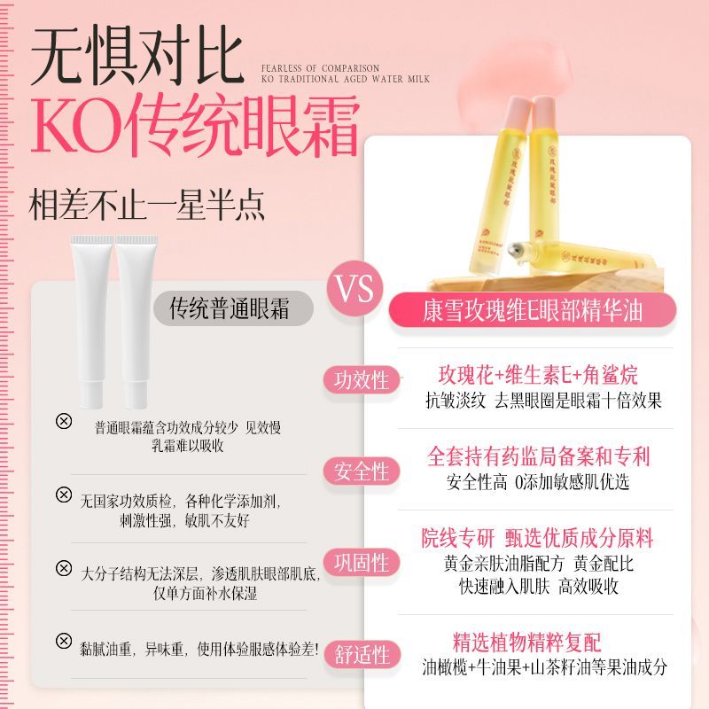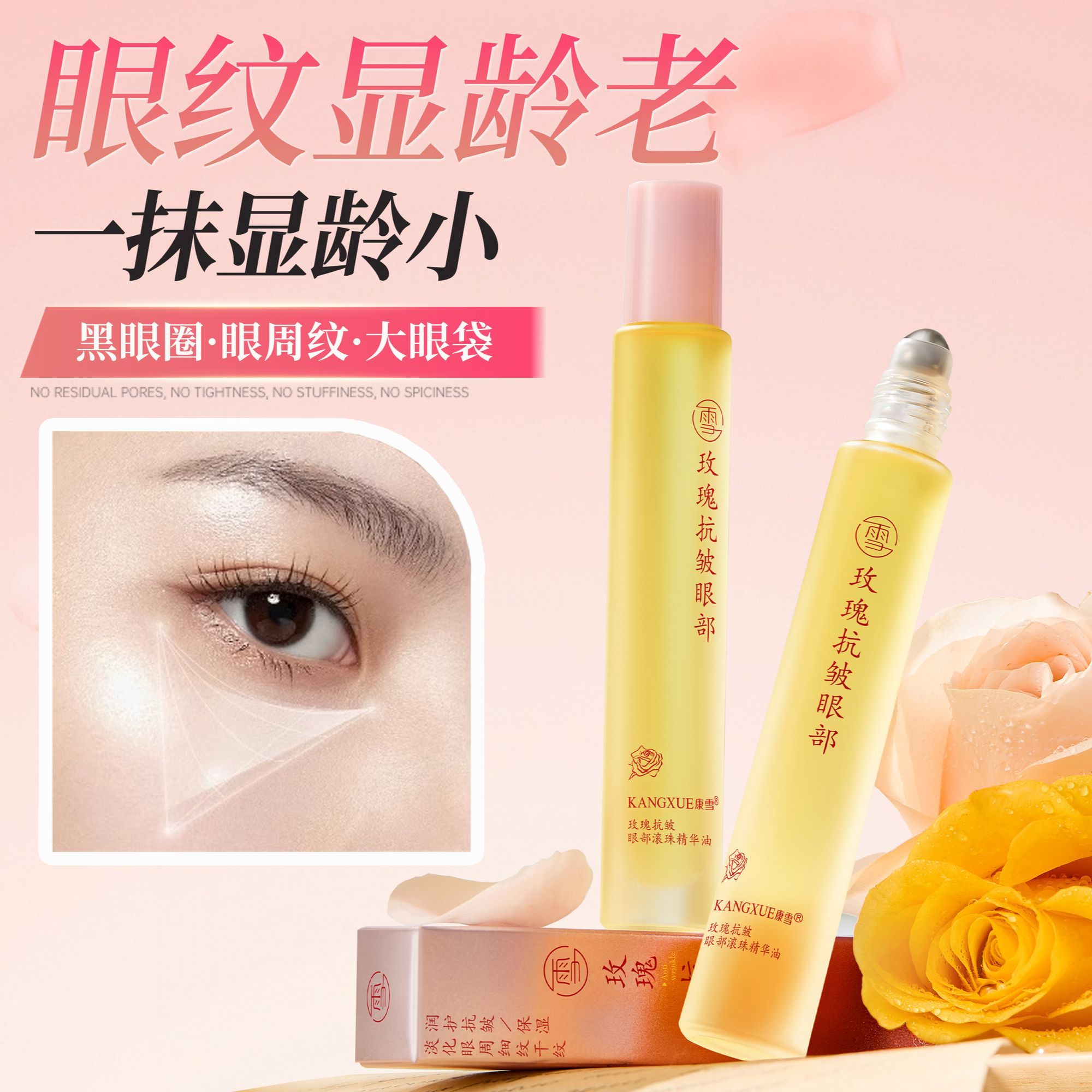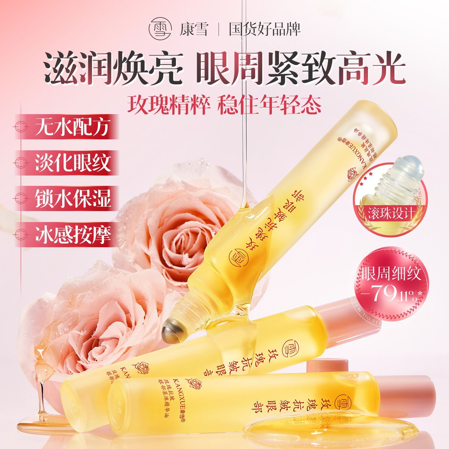 康雪玫瑰眼部精华油滚珠淡化细纹淡黑眼圈提拉紧致保湿眼霜精华油