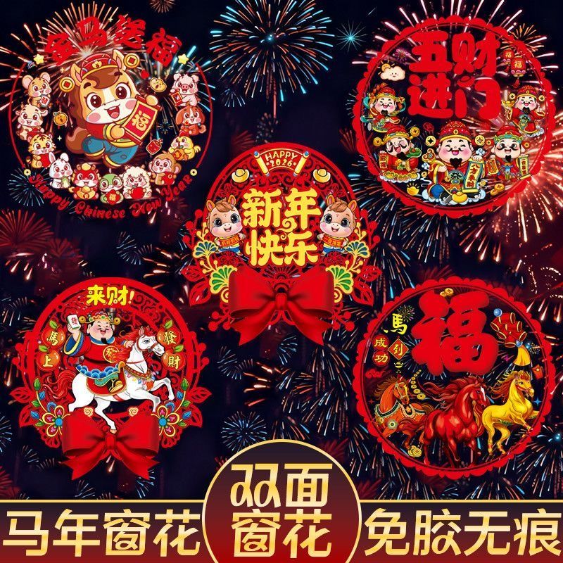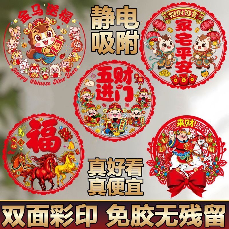 2026马年植绒窗花贴静电贴生肖福字贴新年玻璃贴过年春节装饰贴纸