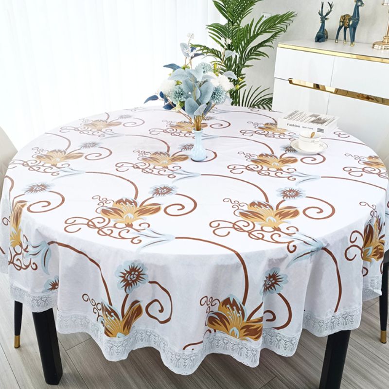 加厚加绒大圆形餐桌布圆台布家用酒店餐厅圆形桌布防水防油免洗