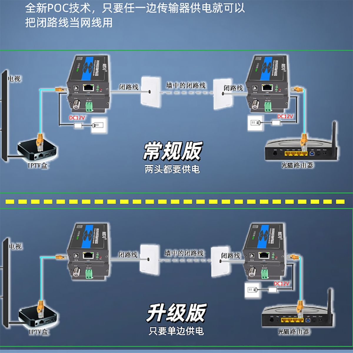 IP广播电视网络转同轴传输器通用同轴视频线转网线高清IPTV转网络