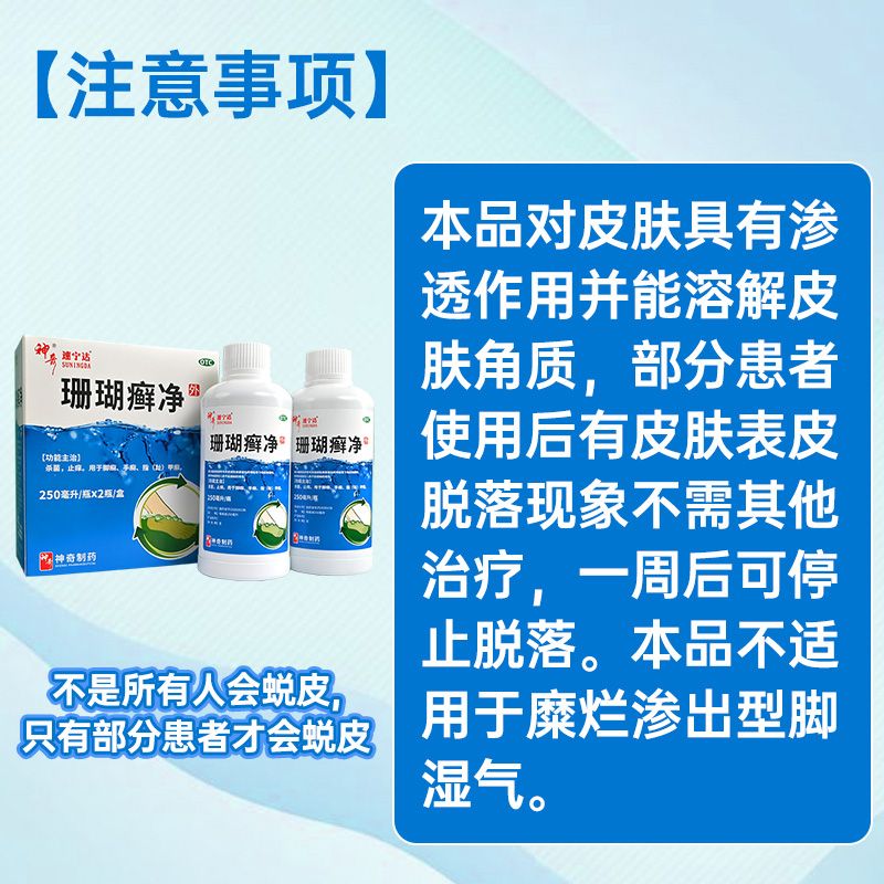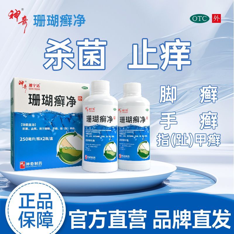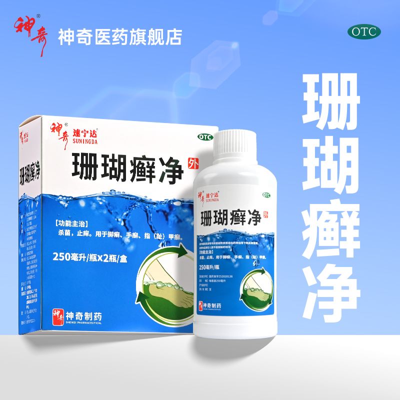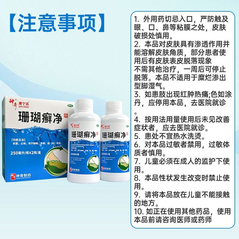 神奇 珊瑚癣净 250ml*2瓶/盒 去脚气真菌感染脚臭杀菌止痒脚痒脱皮脚癣脚气药泡脚药洗脚液正品