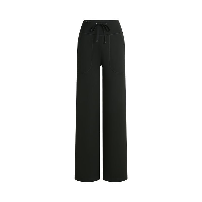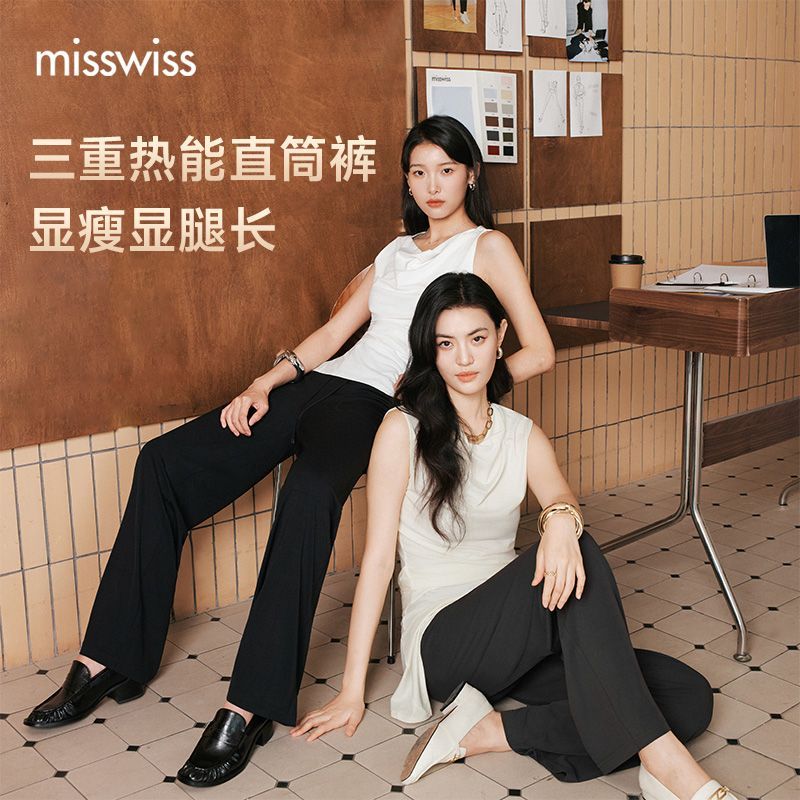 MissWiss直筒裤子女新款户外长裤休闲高腰收腹提臀黑色垂感阔腿裤