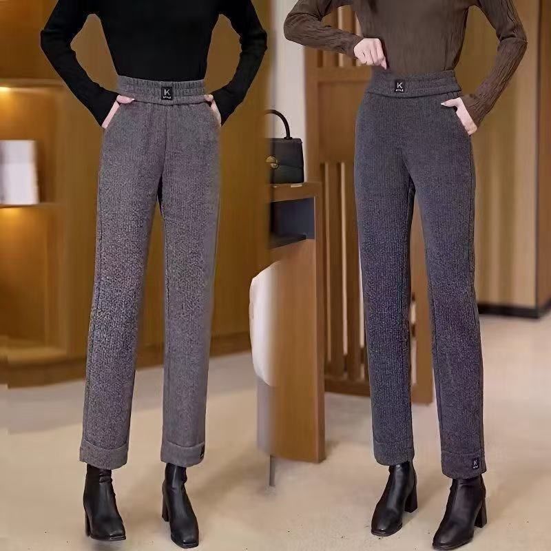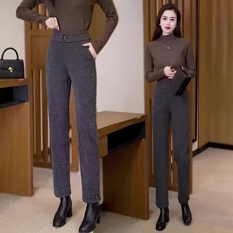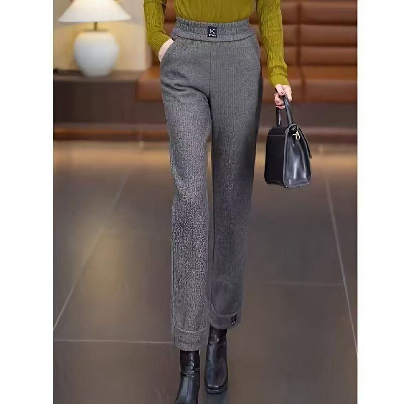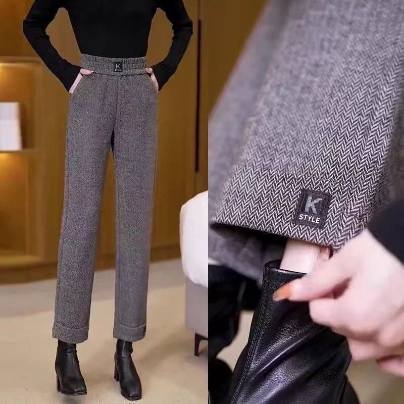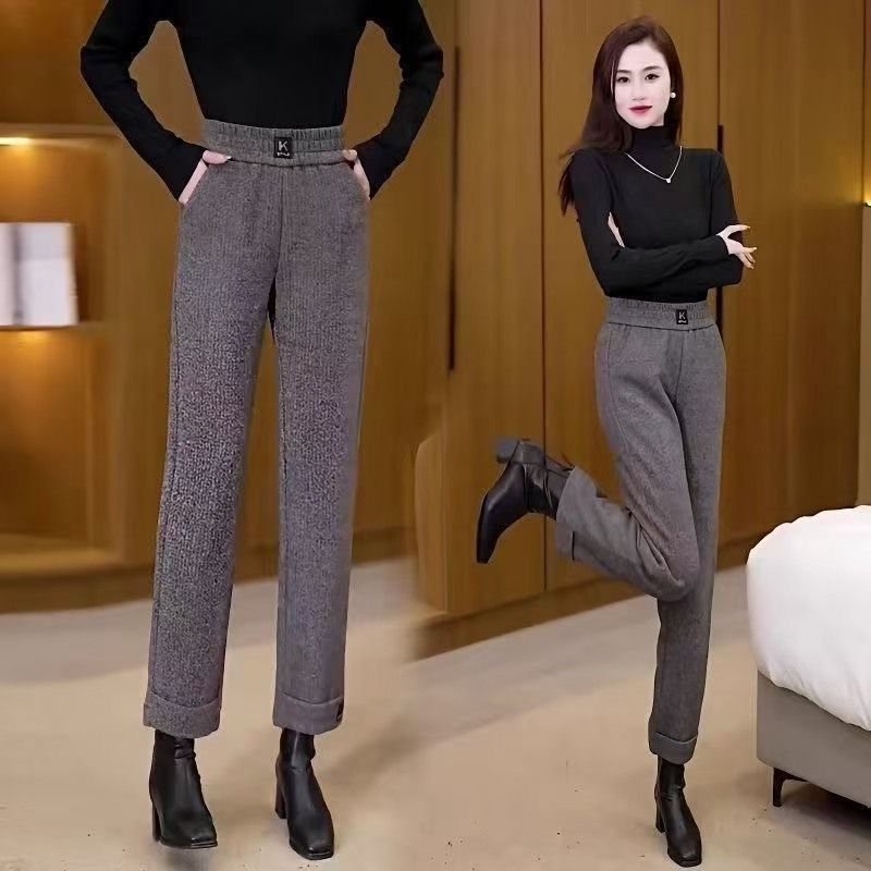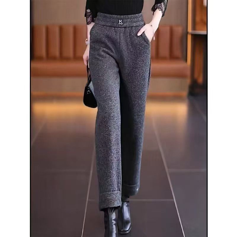 男女2025秋冬季裤子加绒呢子阔腿筒裤秋冬长裤外穿百搭九分裤子