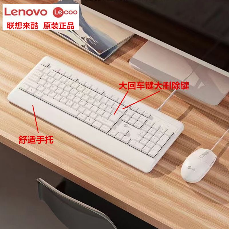 联想来酷高档键盘鼠标套装有线办公司单位电脑通用键鼠一整套白色