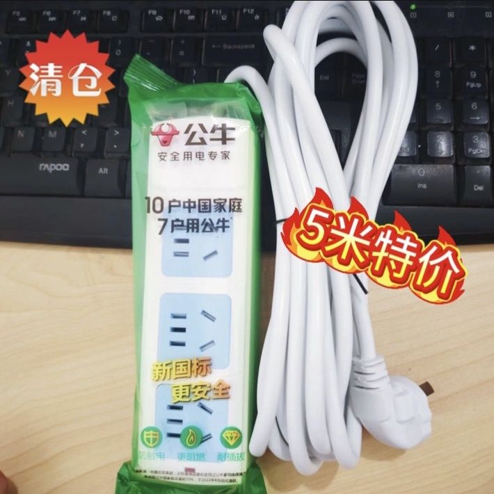 公牛清仓5米带线排插A03接线板正品插座带线排家用插排