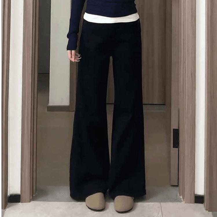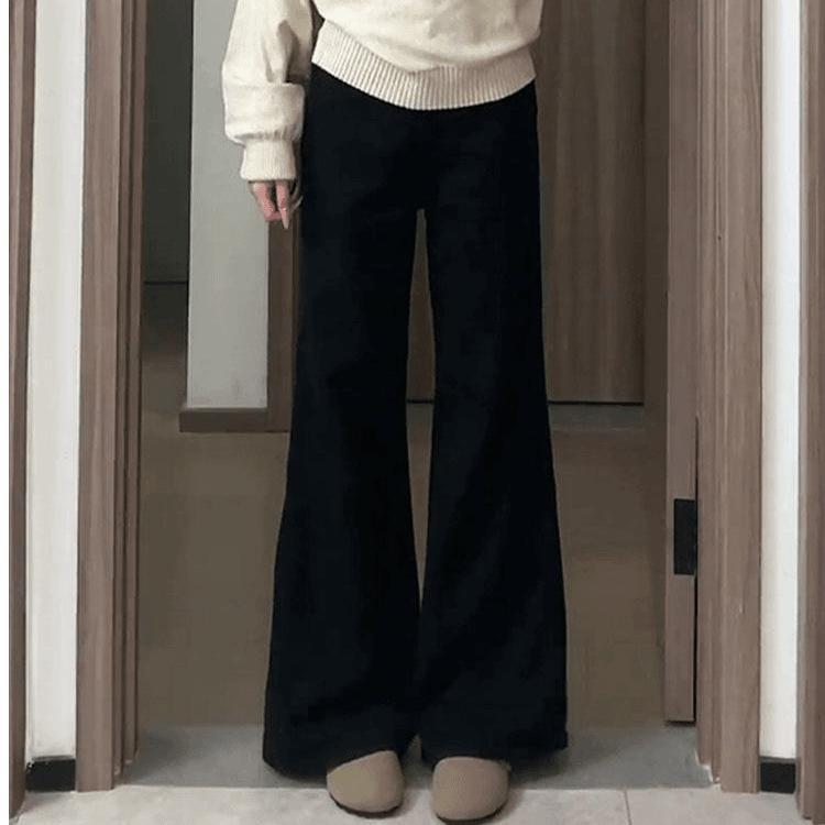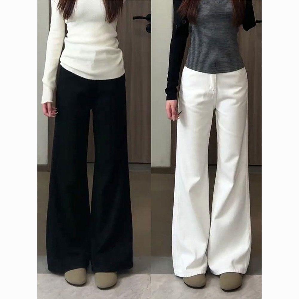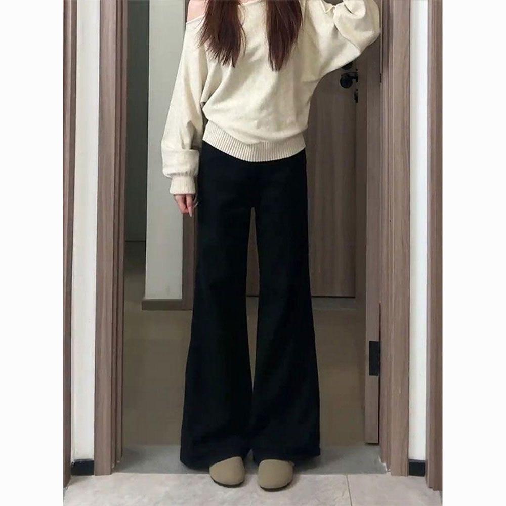 加绒加厚小个子百搭不贴腿微喇叭牛仔裤女简约气质百搭显瘦拖地裤