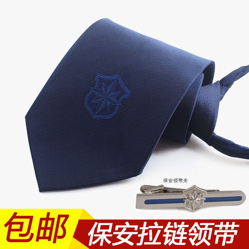 保安领带2011式藏青深蓝色免打结拉链领带保安配饰易拉得领带夹子