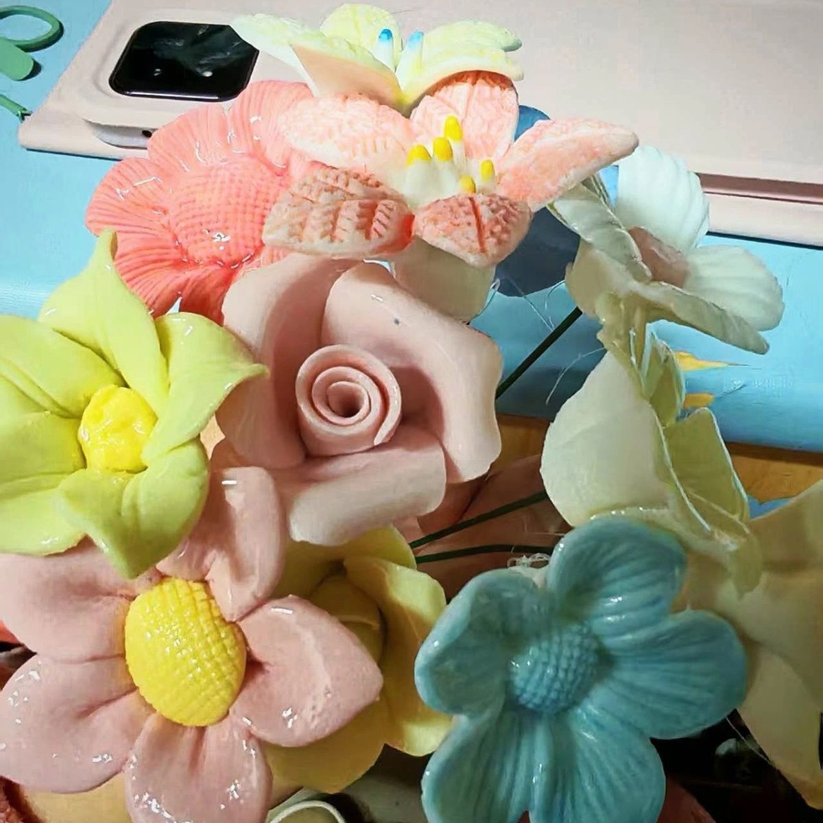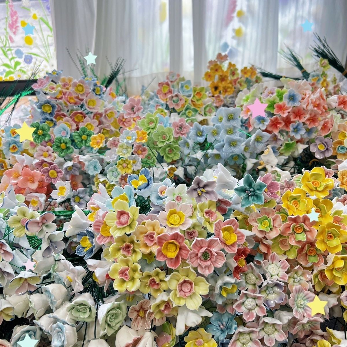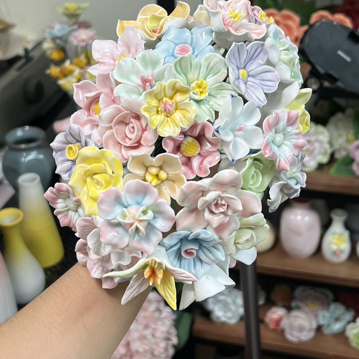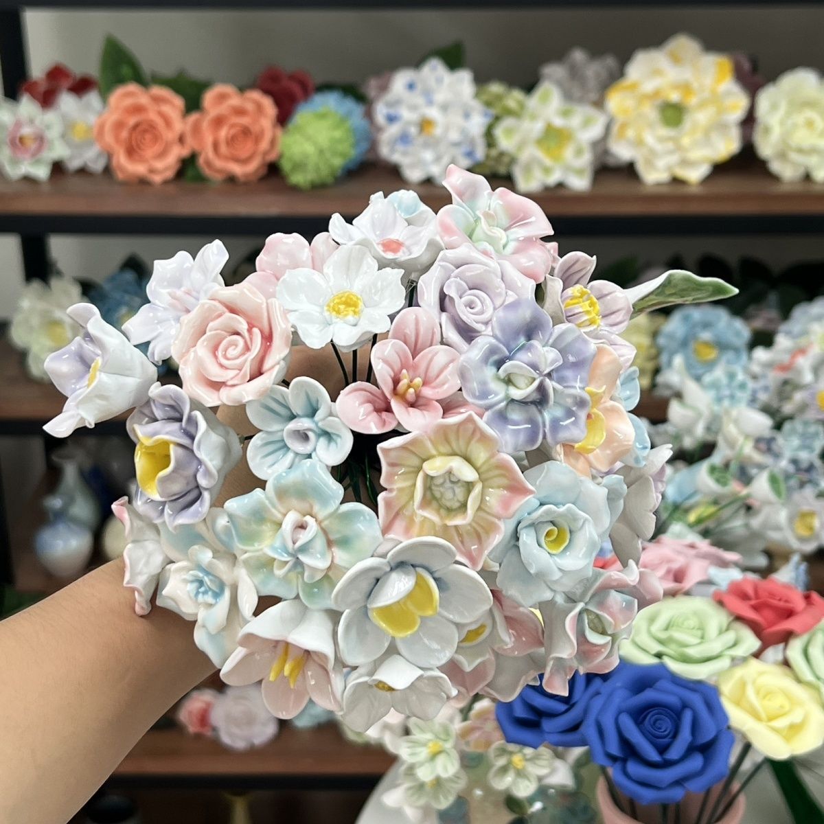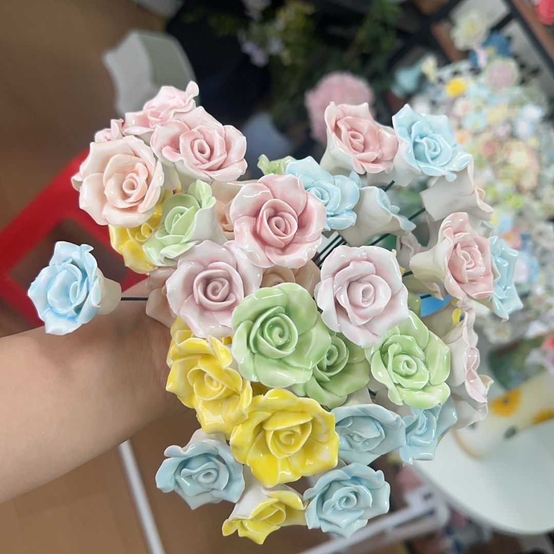 景德网红手工陶瓷永生仿真花创意桌面礼物陶瓷花手工礼物一岁一礼
