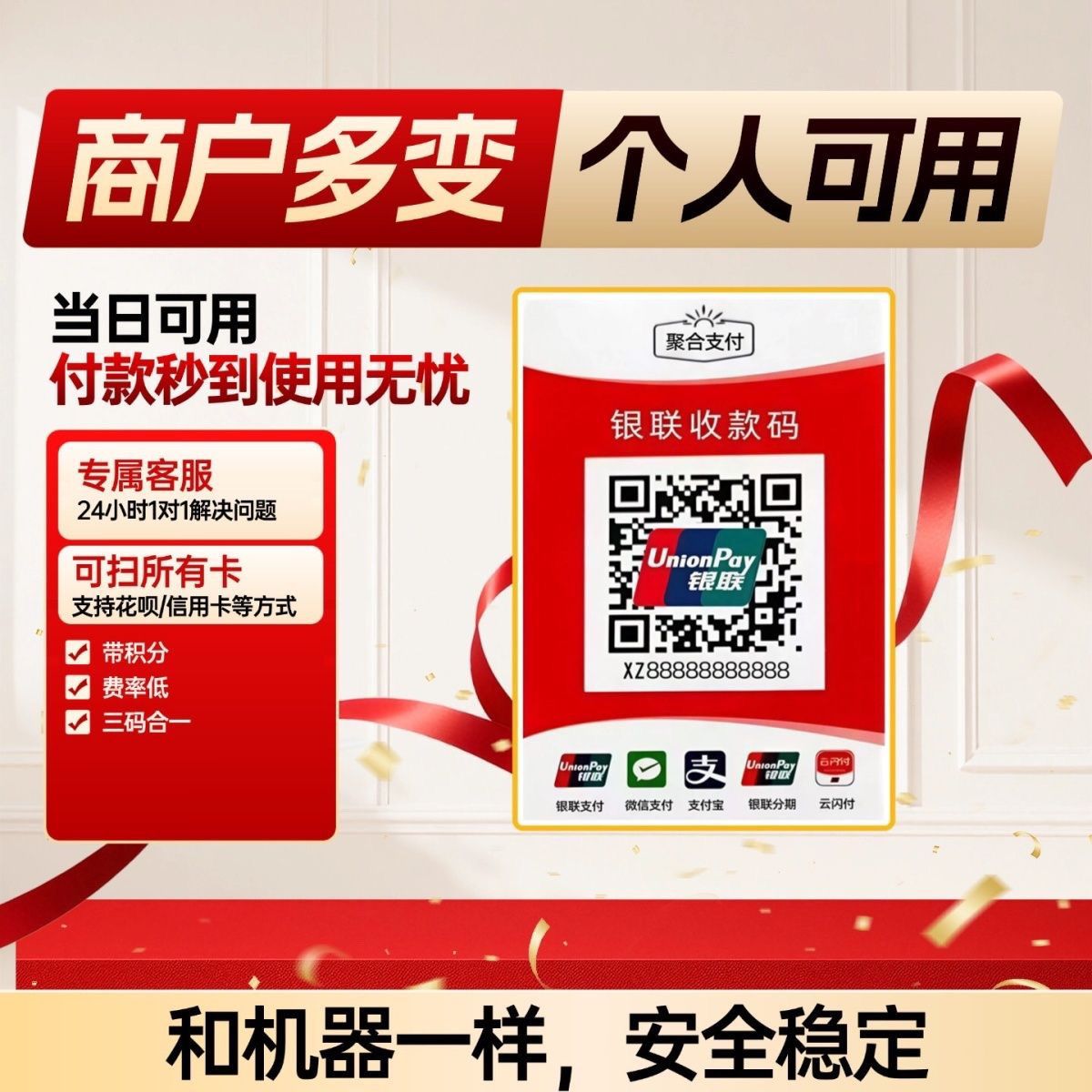 可扫自己卡多通道可变商户收钱码收款牌码牌