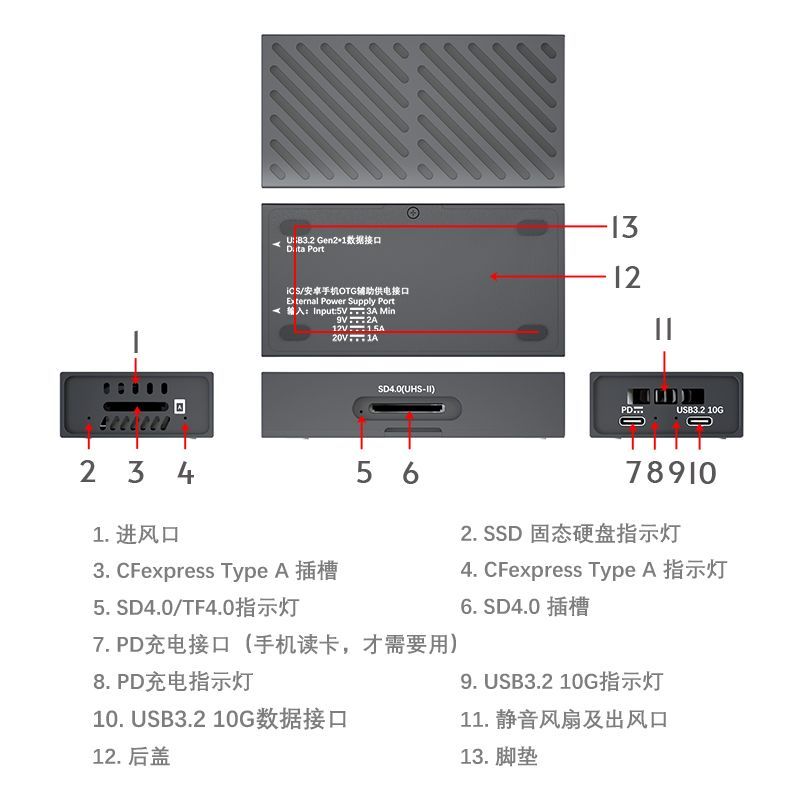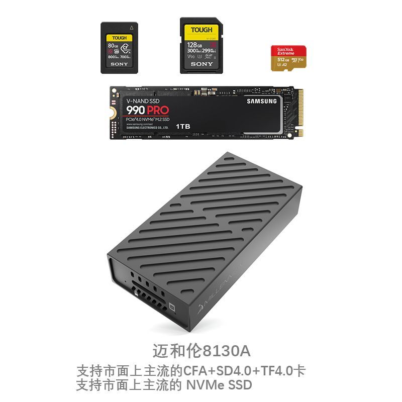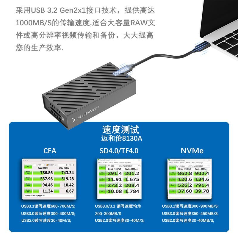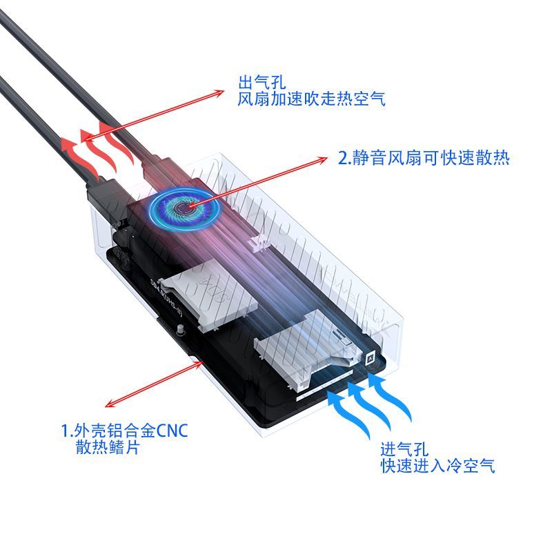 迈和伦8130A风冷 固态硬盘盒+两卡槽读卡器SSD+CFeA+SD高速USB3.2