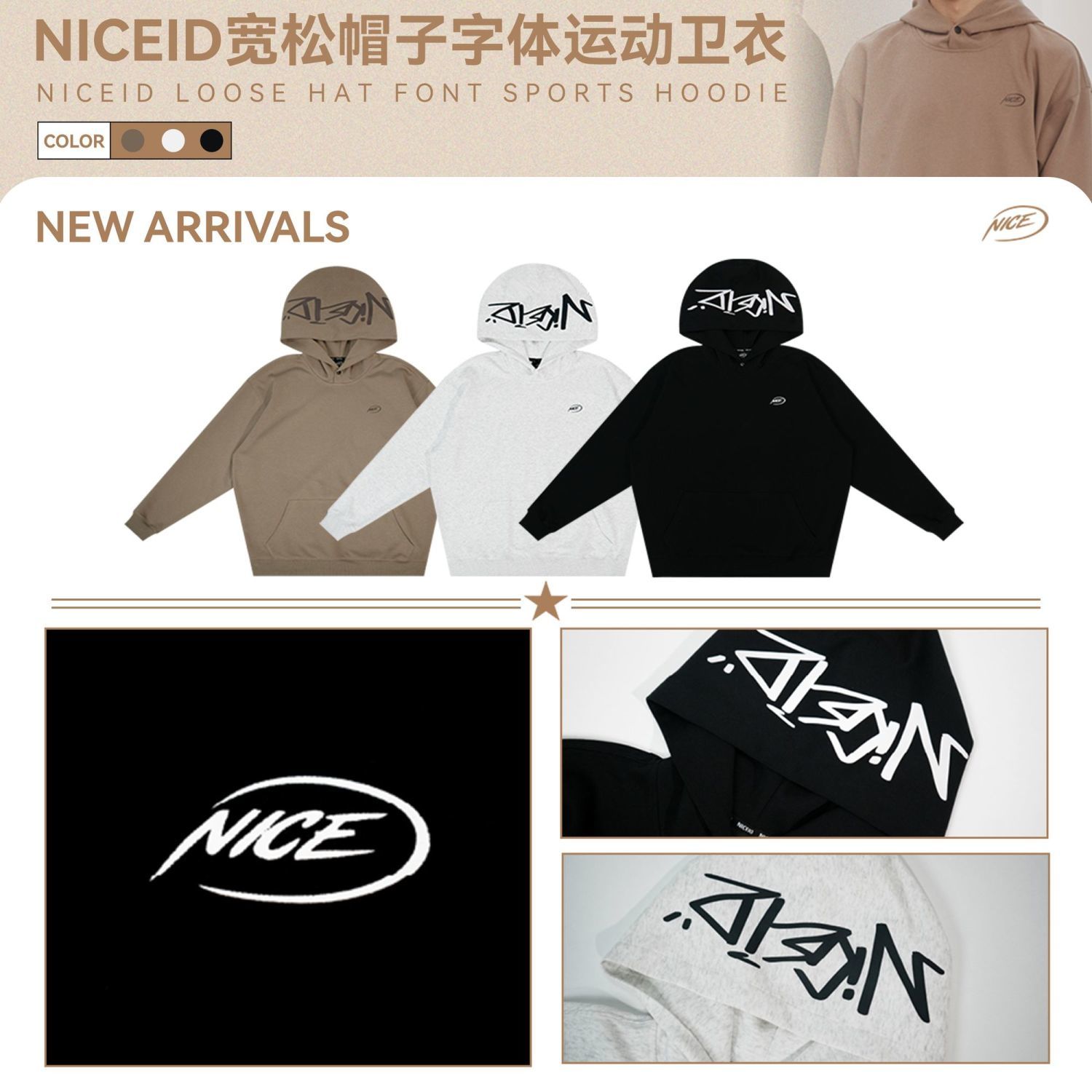 NICEID NICE宽松帽子字体运动卫衣牛奶丝男女春秋休闲连帽套头