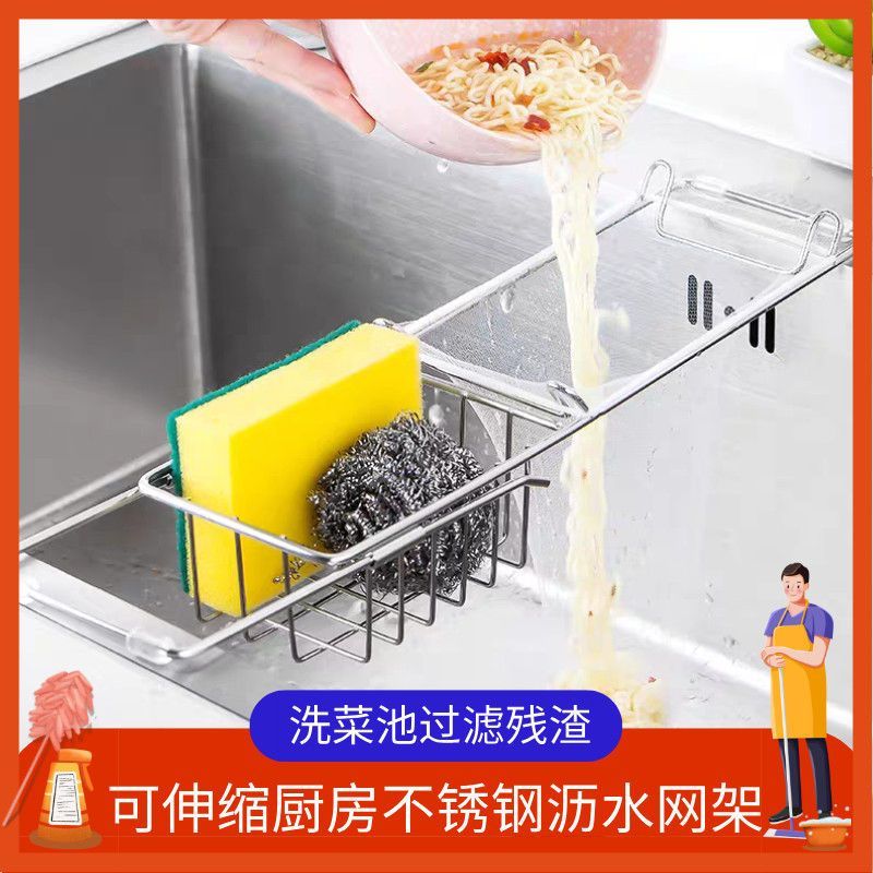 厨房沥水架水槽沥水过滤剩菜过滤网洗菜池洗菜水池可伸缩沥水篮