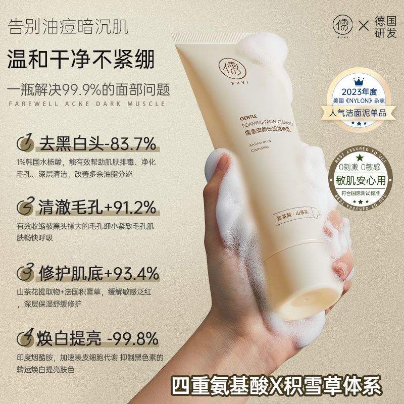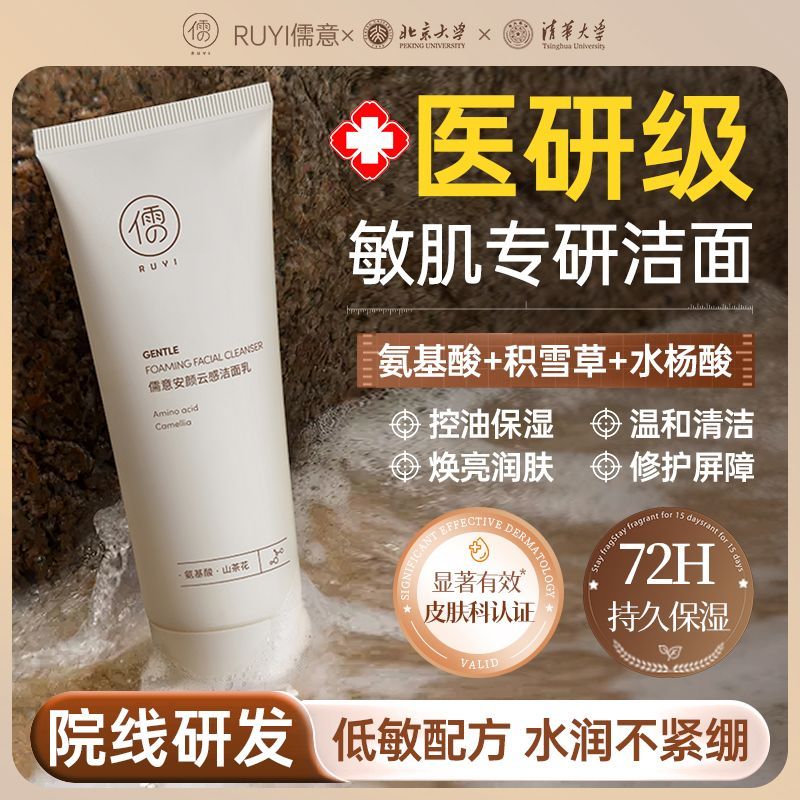 北大研发×儒意氨基酸洗面奶深层清洁补水保湿敏肌积雪草洁面乳女