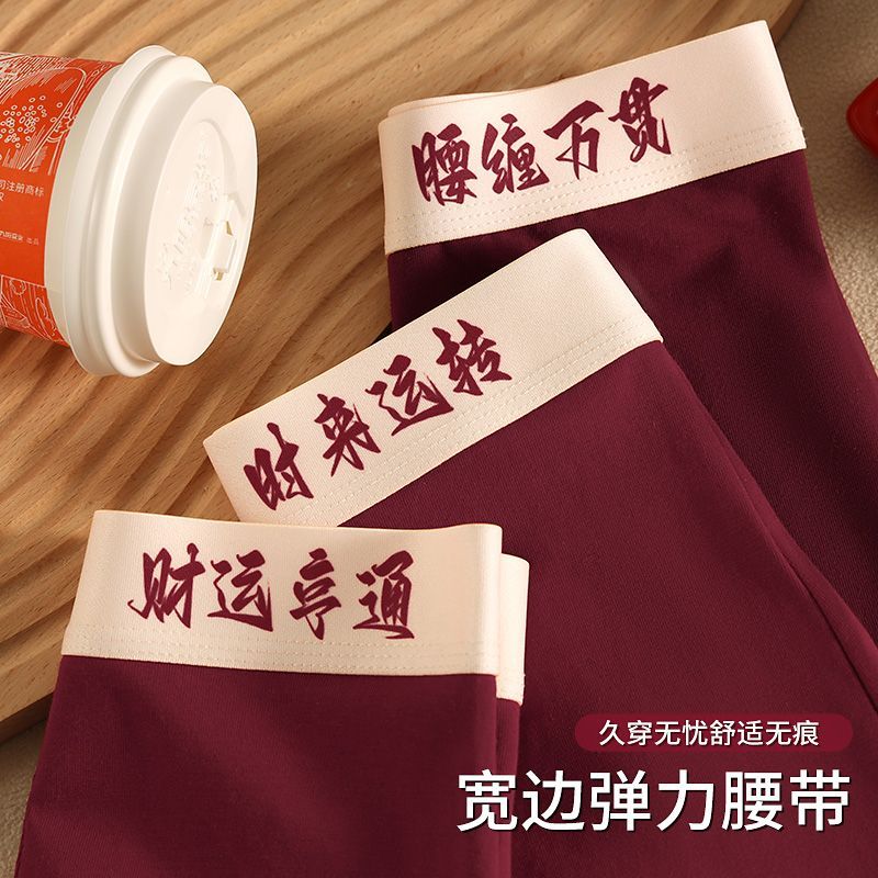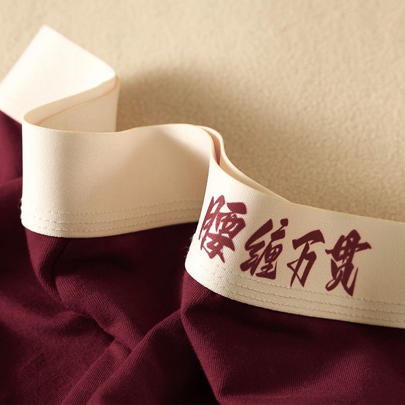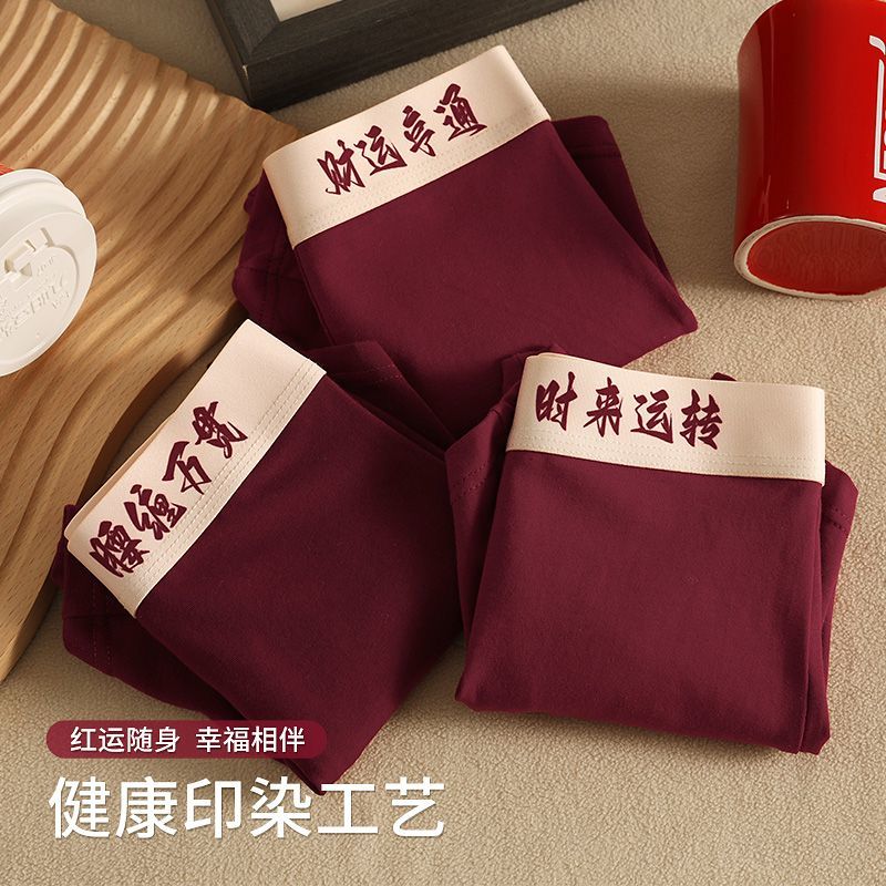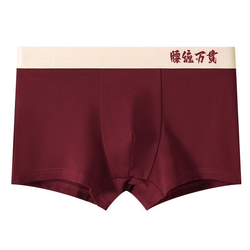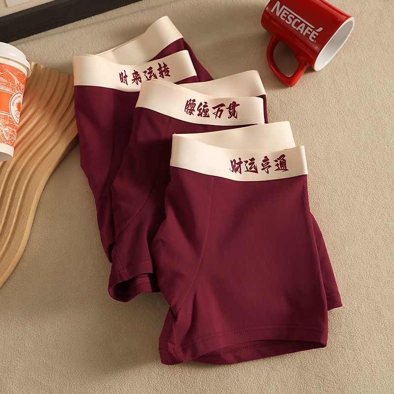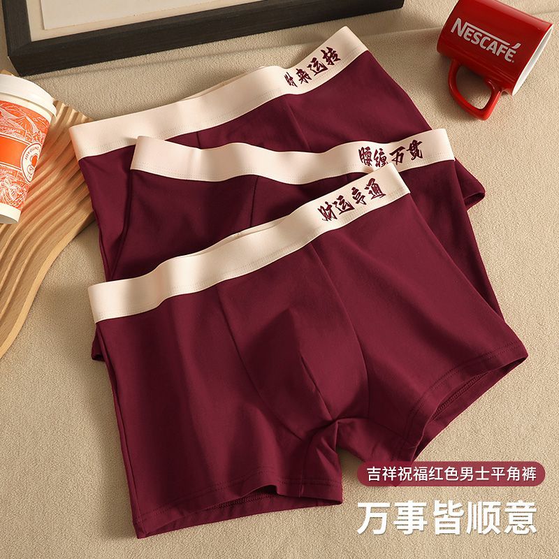 新年喜庆红色内裤抗菌男士四角男生新年纯棉结婚透气运动平角短裤