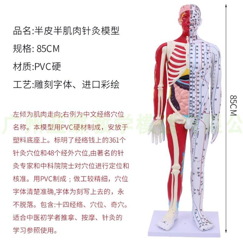 60 85CM人体针灸经络 穴位模型 半皮半肌肉解剖 针灸人体模型中医
