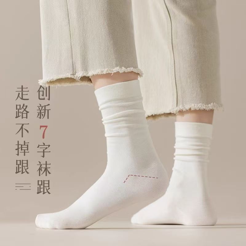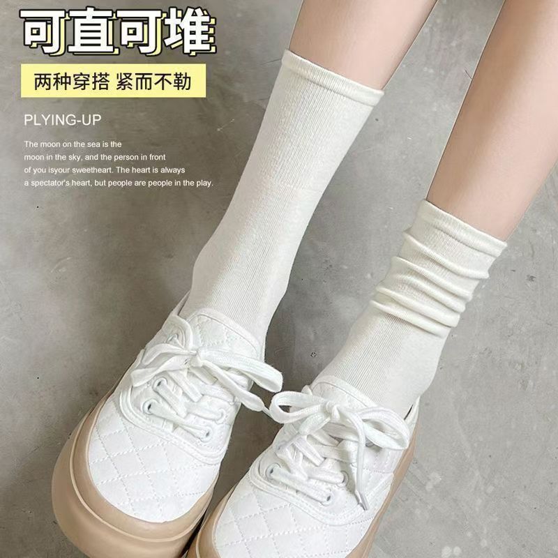 婴儿级抗菌防臭无骨月子袜堆堆袜夏季薄款中筒白色袜子学生版长款