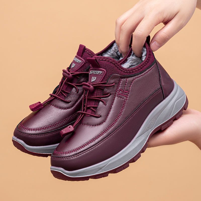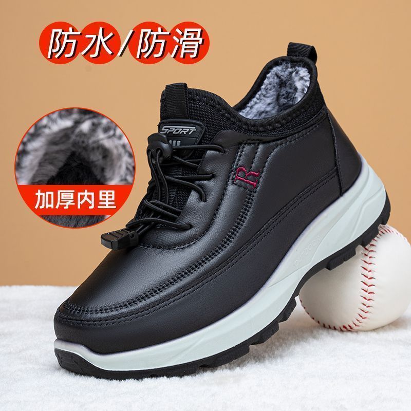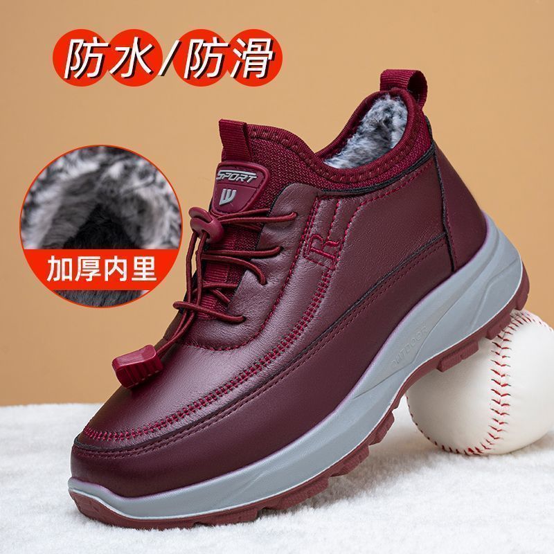 冬季奶奶短筒靴子高帮加绒妈妈中老年雪地靴女防水防滑