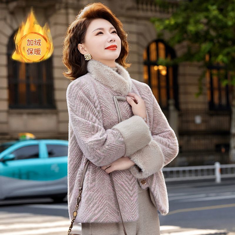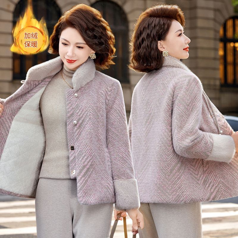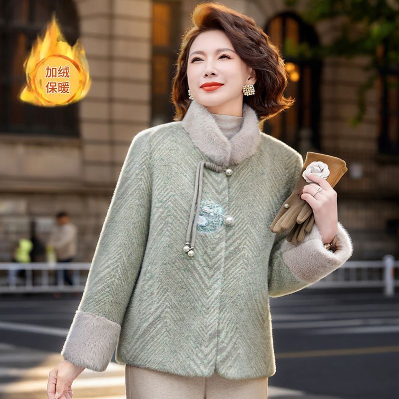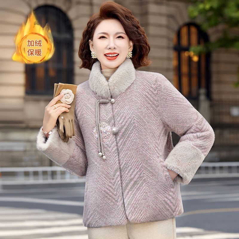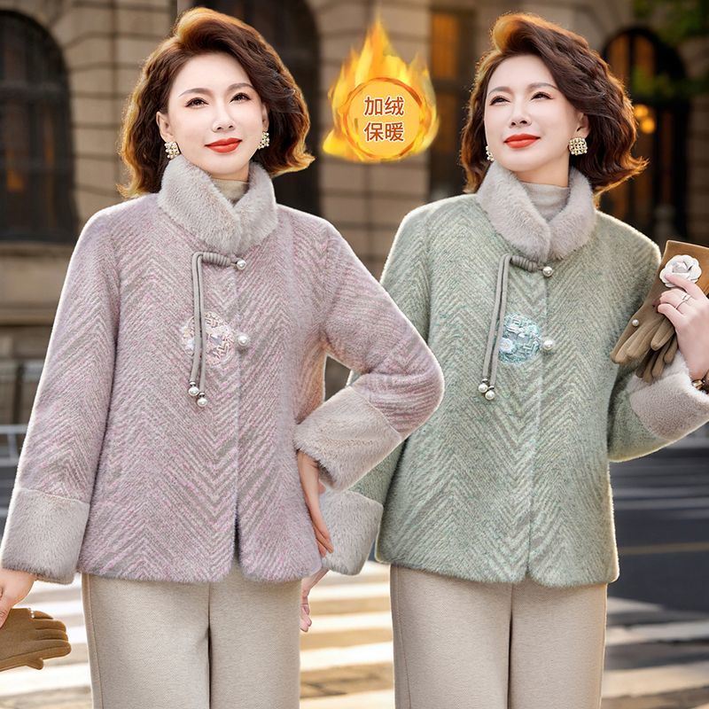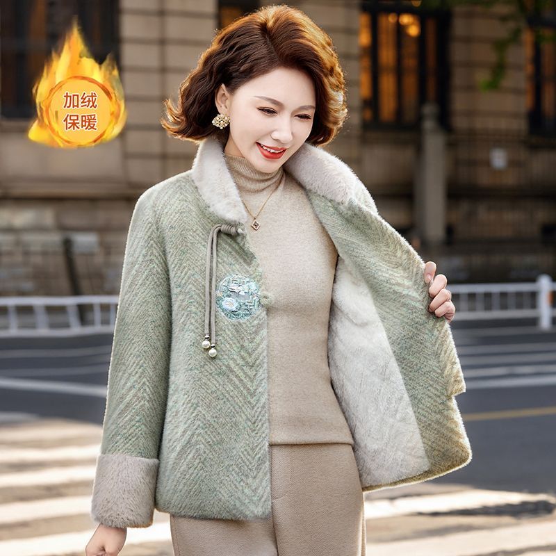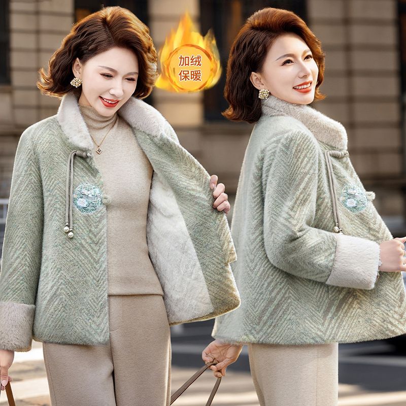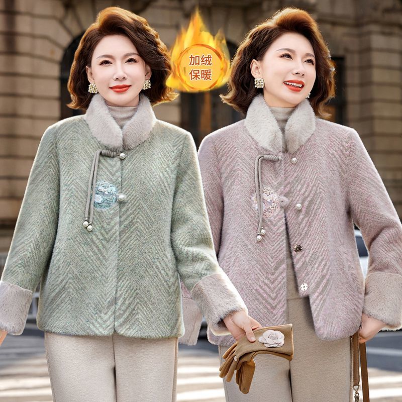 新中式妈妈冬装加绒外套洋气国风棉衣棉袄中老年女装加厚保暖棉服