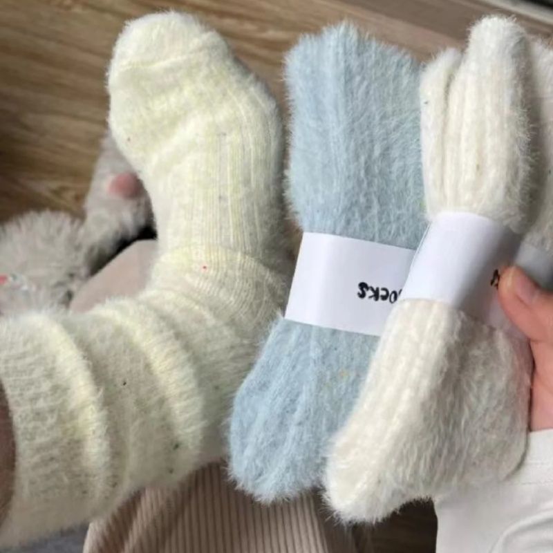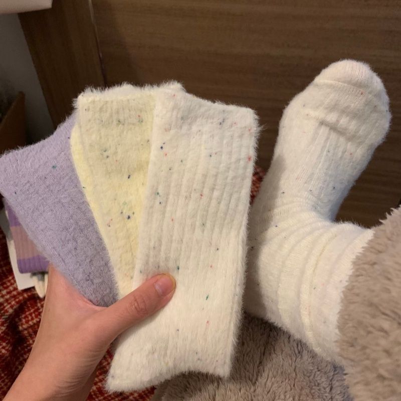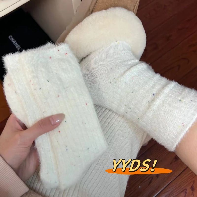 水貂绒毛毛袜子女秋冬加绒加厚中长筒袜保暖堆堆袜森系睡眠地板袜