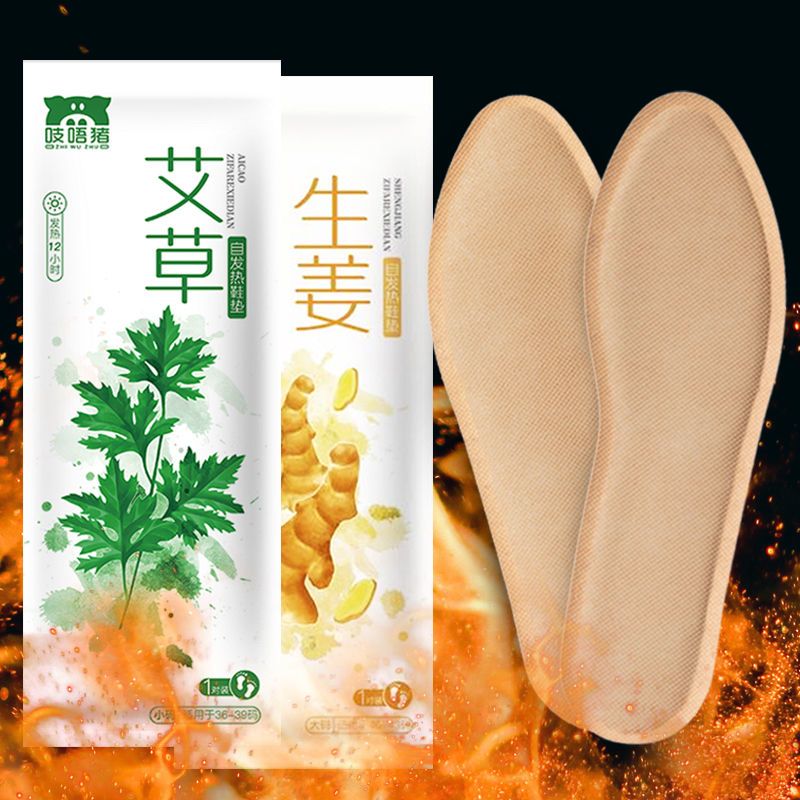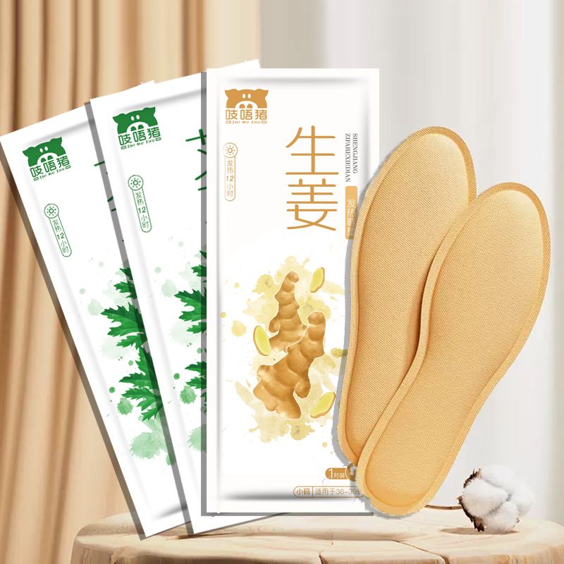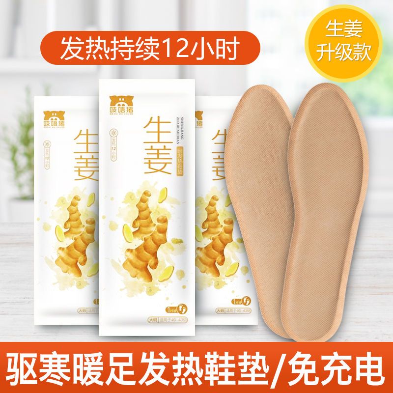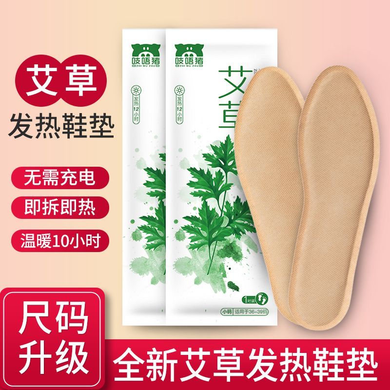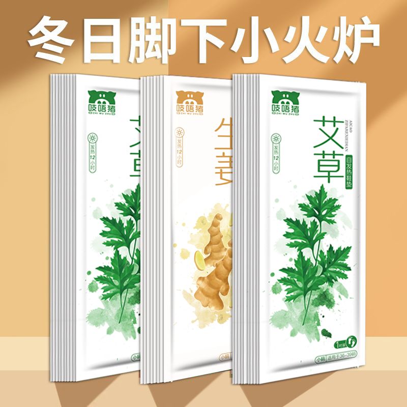 吱唔猪艾草自发热鞋垫自热足贴生姜暖宝宝一次性加热脚垫防寒保暖