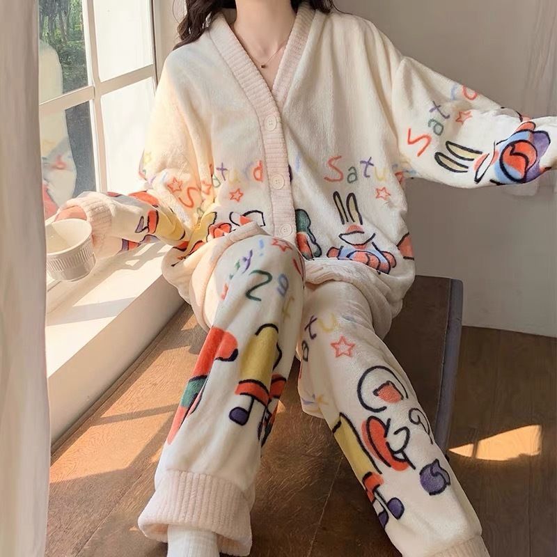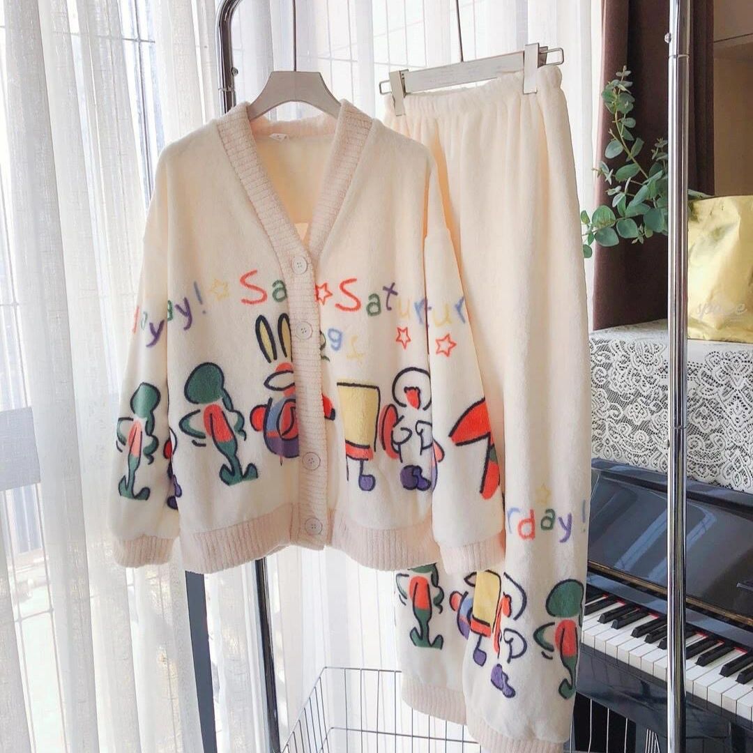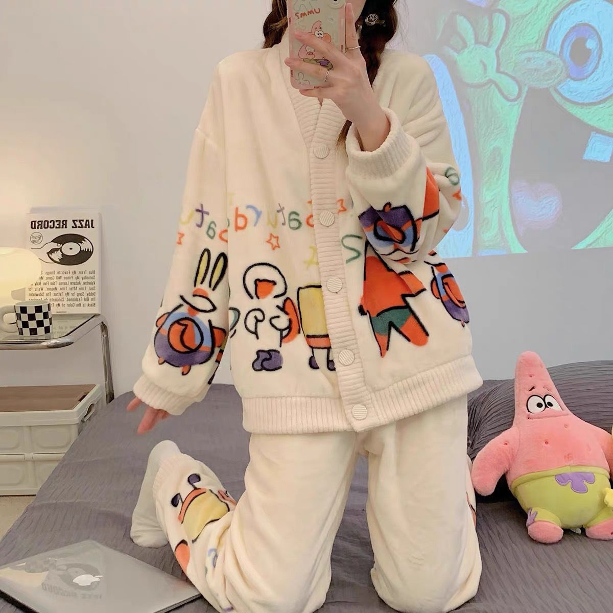 软糯可爱秋冬派大星珊瑚绒数码印花睡衣加绒加厚宽松开衫家居服【5天内发货】