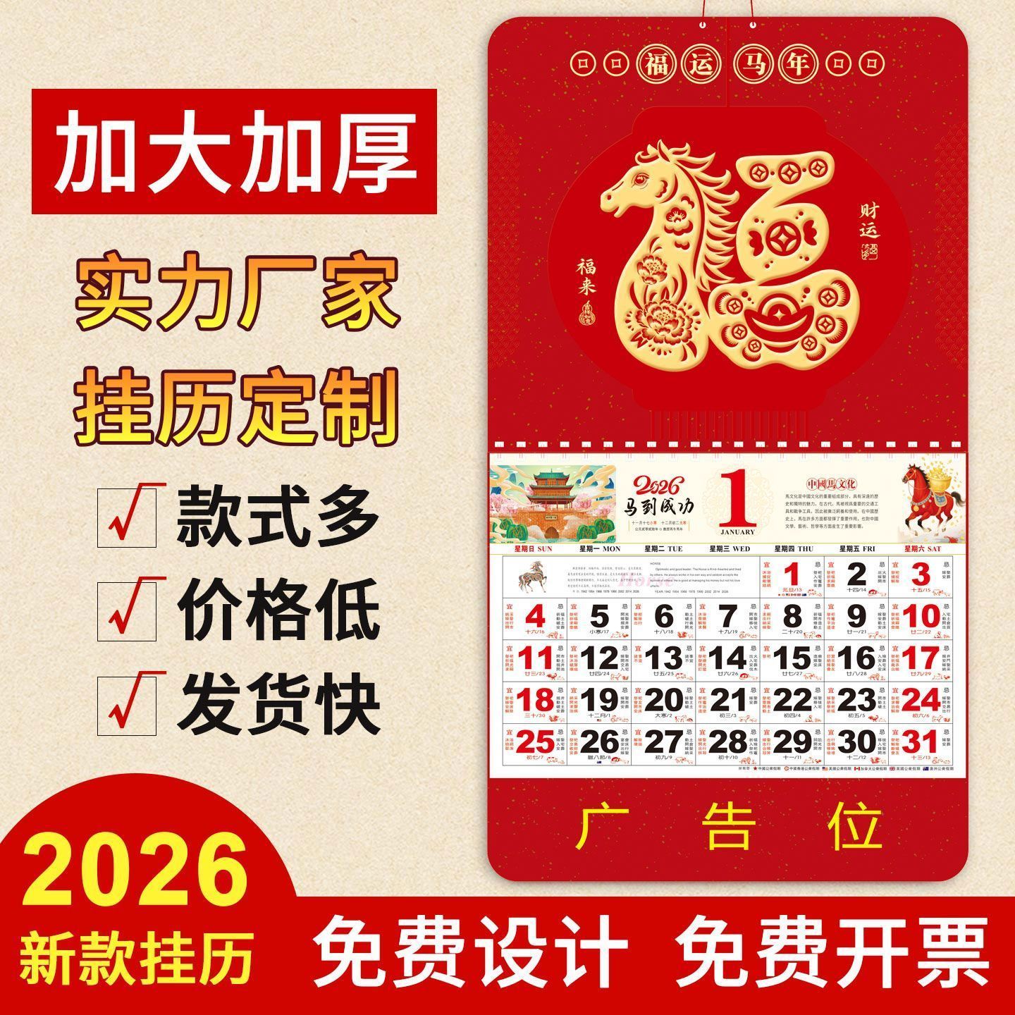 【马到成功】2026马年新款挂历大号挂日历福字定制挂历创意玩具