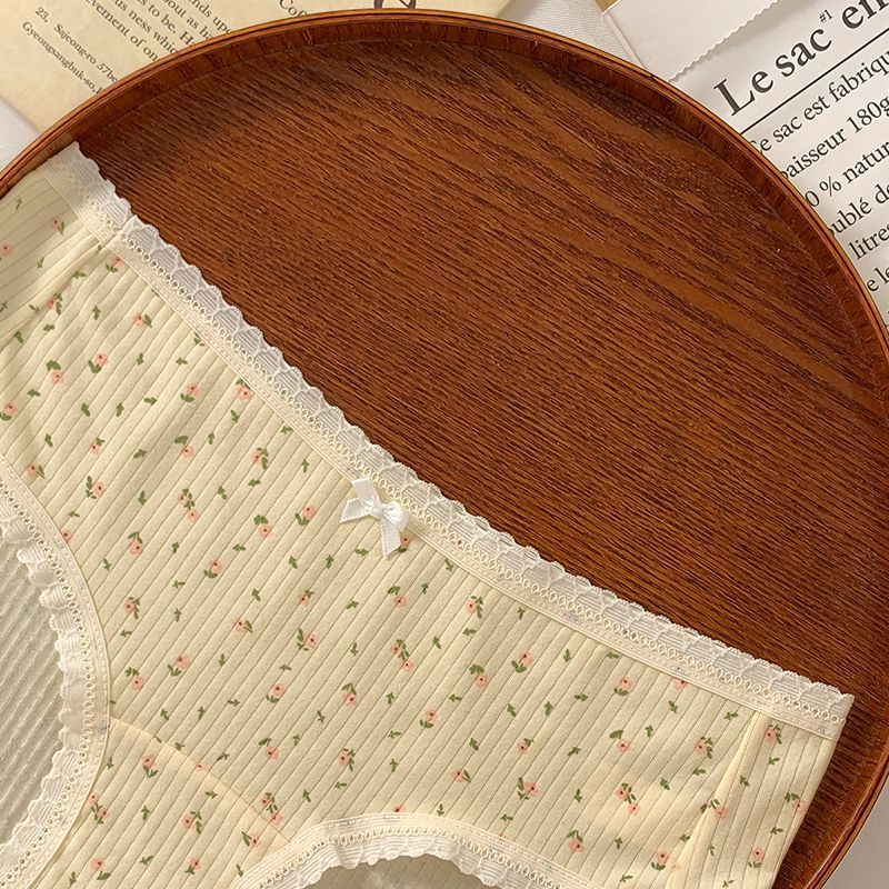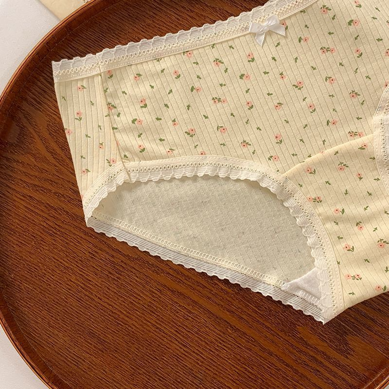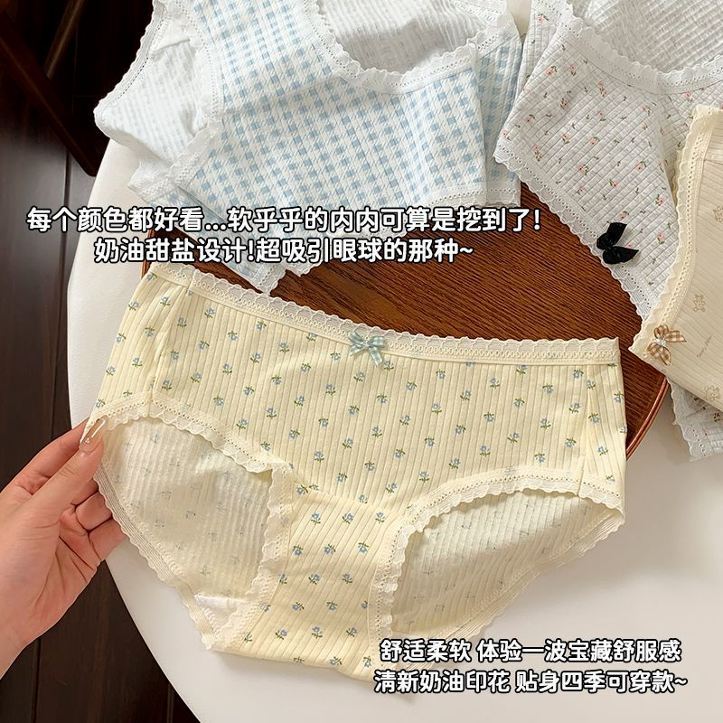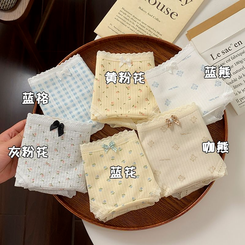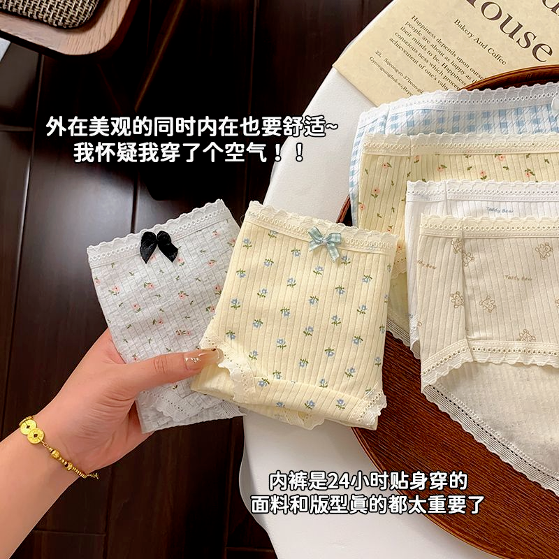 甜美碎花10A抑菌内裤女纯棉三角裤2025新款蝴蝶结纯欲短裤