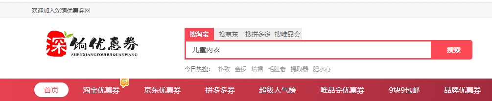 1、进入深饷优惠券网(www.youquanme.cn)首页,在上面点击“搜淘宝”,再输入需要搜索的商品名称或你在淘宝看到的商品标题,然后点“搜索”。