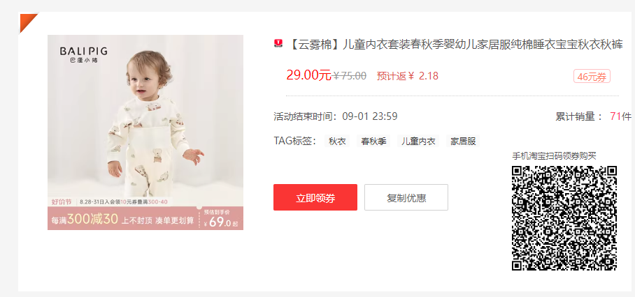 3、进入商品后自购的话可以登录手机淘宝APP扫码购买(更方便快捷),或者点“立即领券”(如果没券的点“立即查看”,也有佣金)。如果是分享给好友则点“复制优惠”再去微信聊天粘贴发送。