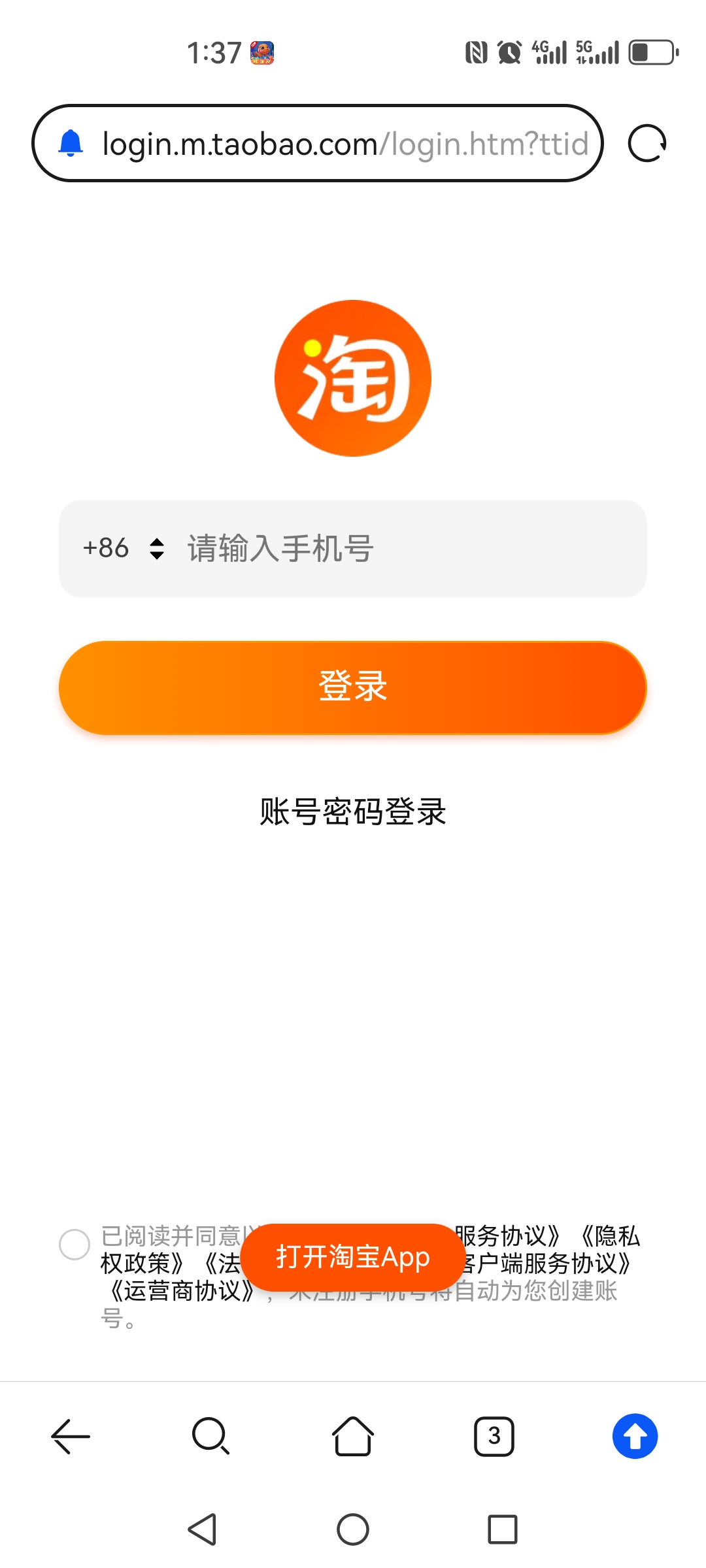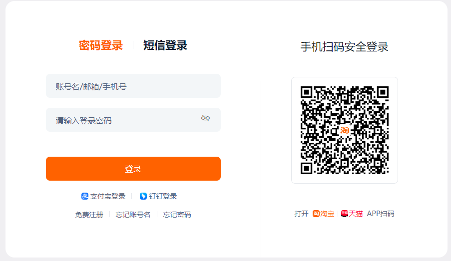 5、点击“一键登录”或“立即登录”,使用密码或手机淘宝APP扫码登录下单就可以了